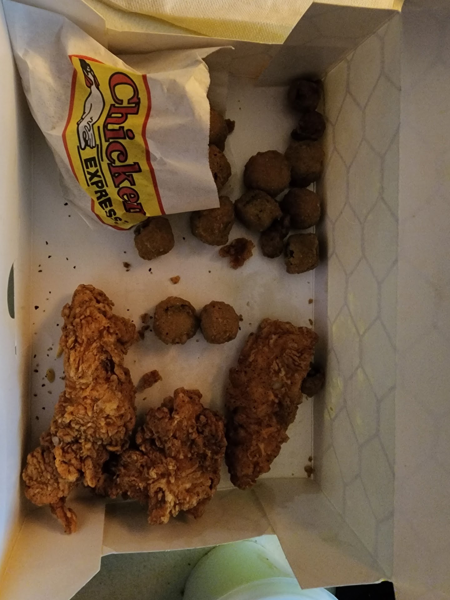 Read moreFirst off I loveeee Chicken Express and have never had a problem until it came to this location. The guy that took my order was so short and nasty with me so I combatted by being nice and welcoming and still nothing. I get to my location, and notice that my food is extremely cold like it had been sitting there all day and they hadn’t dropped a fresh batch of chicken in a while. Utterly disgusting, but that’s not even the worst part. I look at my chicken and there’s a piece of hair fried into it. I almost puked. The manager I spoke to acted like he didn’t care when I called to discuss what had occurred. Will not be returning to this location and it sucks because I just moved to Seguin right down the street. 0...