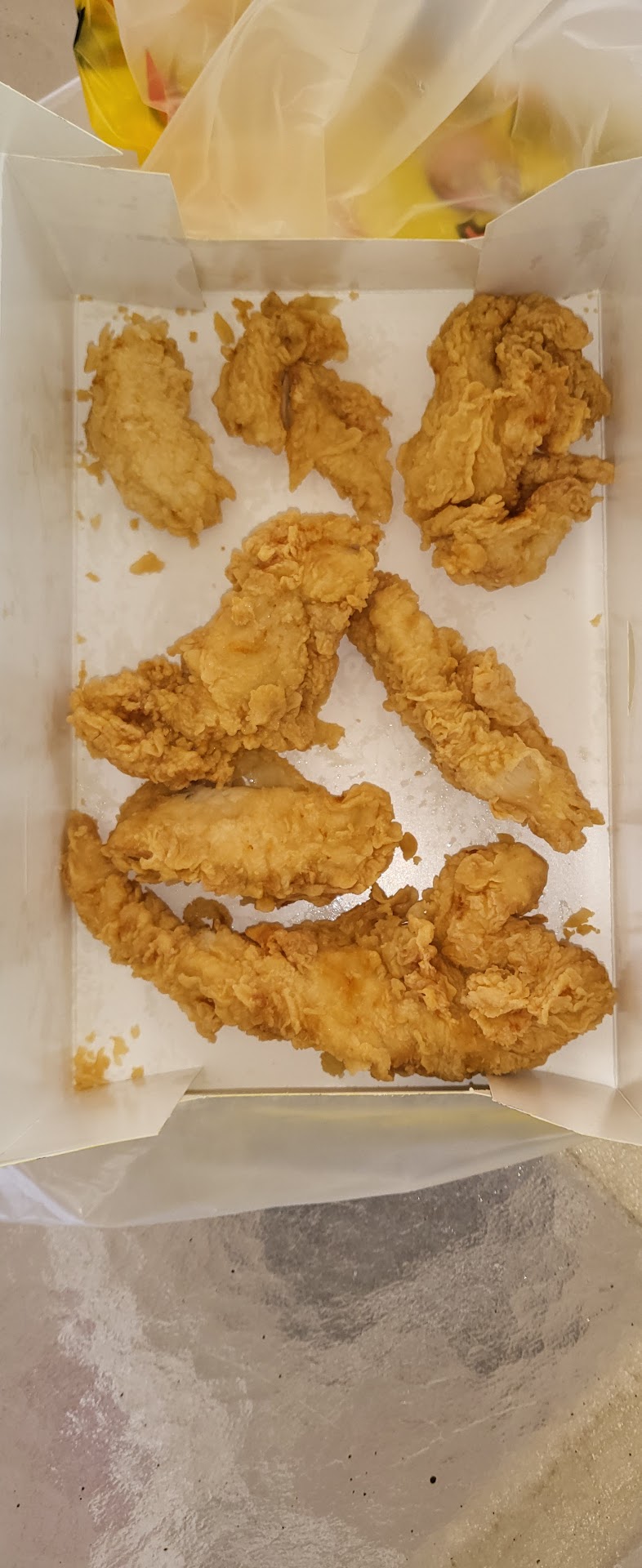 The food was way overcooked and DRY as a bone! The mashed potatoes had a glob dolloped on top, as if someone took their finger & cleaned the potatoes from scoop & flicked it in on top. There were crumbs from the breading mixed all throughout the potatoes and there was a WAD of crumbs on the bottom of the potatoes, mixed in but quite visible! YUCK! What the ever loving heck was that? Disgusting! The dinner roll literally was squished! The person obviously smashed the roll with the tongs….Absolutely Not worth the $10 I spent for two tiny, dry, overcooked chicken legs, gross mashed potatoes & and a smushed...