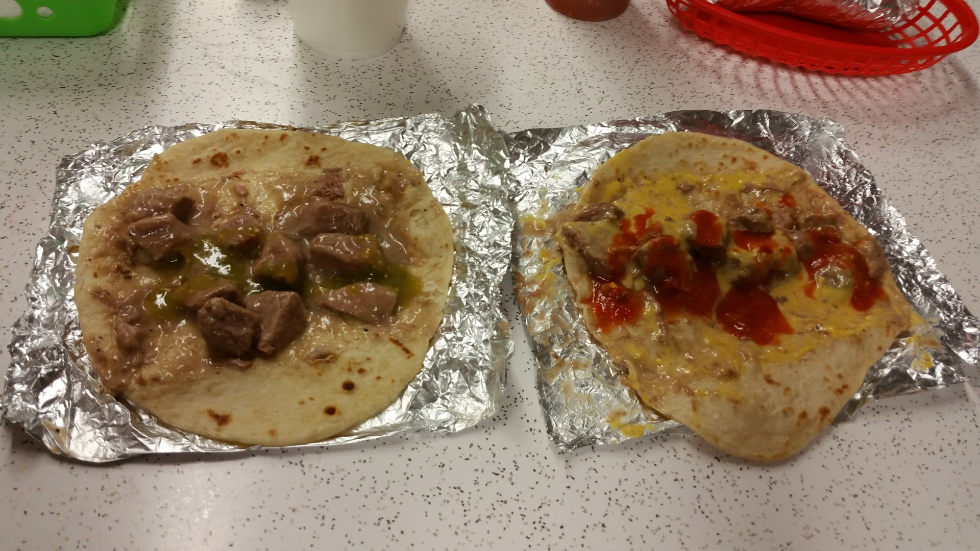 This was a laid back filling and fulfilling way to end a day or at the park! The prices and the portions are Great! Today was my first time coming back to this place in years! My opinion at that time was fairly low, I'm very happy my friends talked me into coming here! They have really stepped up their game! Especially as far as flavor goes! I ordered a carne guisada taco and a bean and cheese taco, both on flour tortillas, Yum! My tortillas were soft, fluffy and warm and they did not taste store bought! The carne guisada (beef/brown gravy) I ordered was flavored well and the meat was cut into manageable portions.(I really dislike when the meat is cut into huge pieces, it makes me feel as I have to gnaw through the taco lol that is not cute!) Green and red chilli are on the tables in squeeze bottles, I used the salsa Verde (Green) on both tacos, it was perfect!! Sometimes when I order bean and cheese tacos I feel like I "have to" shake half a shaker of salt onto the beans in order to get any flavor BUT I used very little and the taco was quite enjoyable and did not lack in flavor! Although I feel the service could use a tweak here and there, overall the young lady who waited on us (she was the only waitress in duty) was nice and quick! I'm very content with my choice to eat here and hope to do...