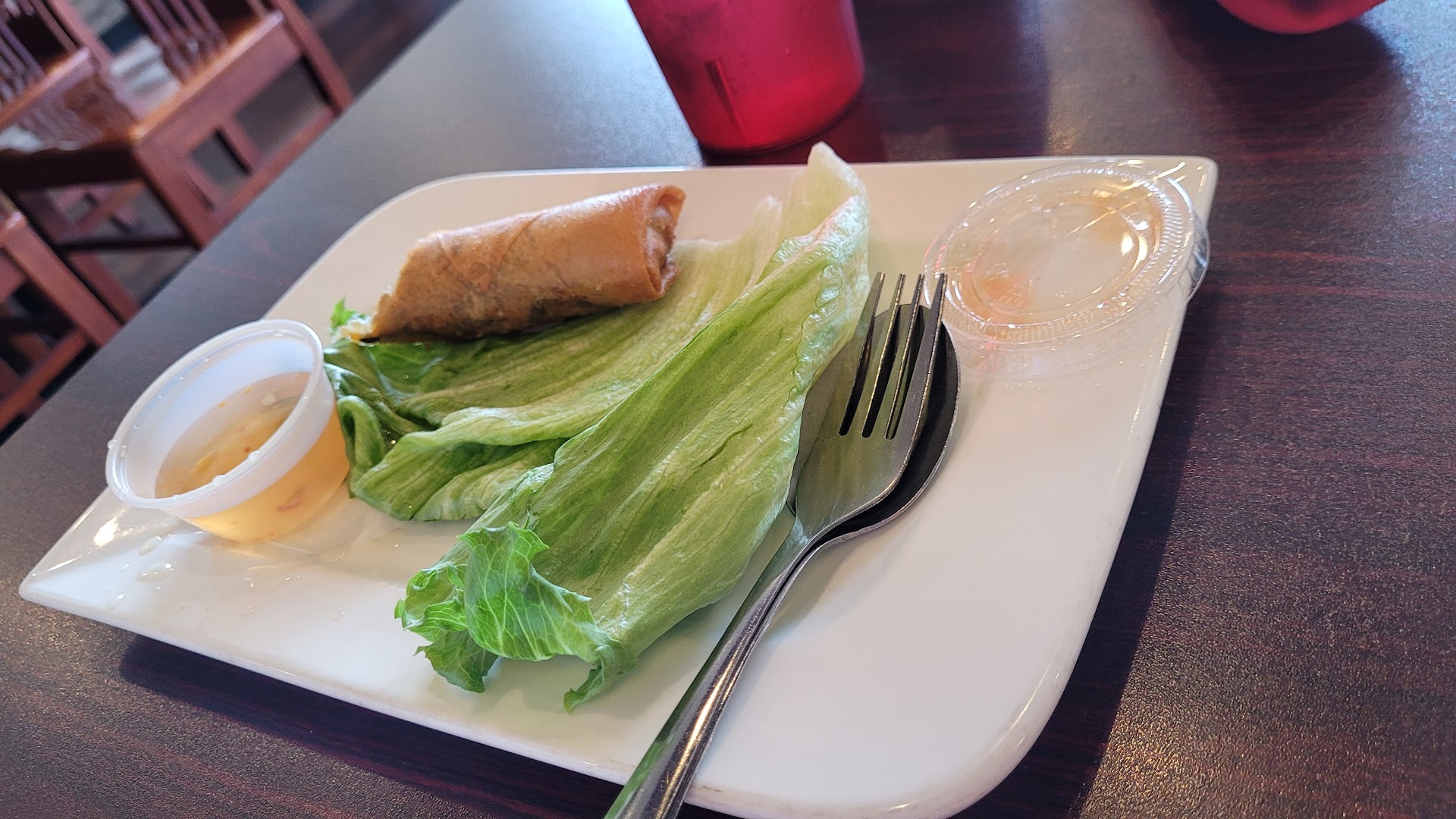 My first impressions were good. I was quickly greeted and given a table. The restaurant is open and casual but looks plenty cool and contemporary. My server delivered my sweet tea (Just because you go to an ethnic restaurant doesn't take the Texan out of you!) promptly, and I decided to order some Vietnamese-style egg rolls as an appetizer. Being lunch, and being that I was only moderately hungry, I chose the P1, a 5-meat pho in the smaller size (around $4, I think). The egg rolls arrived first, and they were piping hot and absolutely jammed with fresh, flavorful fillings. The duck sauce was a bit runny, and not very flavorful, but the egg rolls themselves were good enough so that it really didn't matter. The pho arrived about 5 minutes later, and I promise I'm not exaggerating when I say, "Dannnnng!!!!" Seriously, this was the best-tasting pho I have ever eaten. Disclaimer here--my sample size is probably only about 5 restaurants. Regardless, this was noodle soup the way the good Lord intended. The thinly-sliced beef, the green onions, fresh sprouts, jalapeno slices (on the side, but I had to put them in--another Texas thing), the noodles--all of it was fresh and flavorful. I only wished I had the time/appetite today for the full bowl, which is so big you could probably swim laps in it. And it's just like $8.50, to boot!