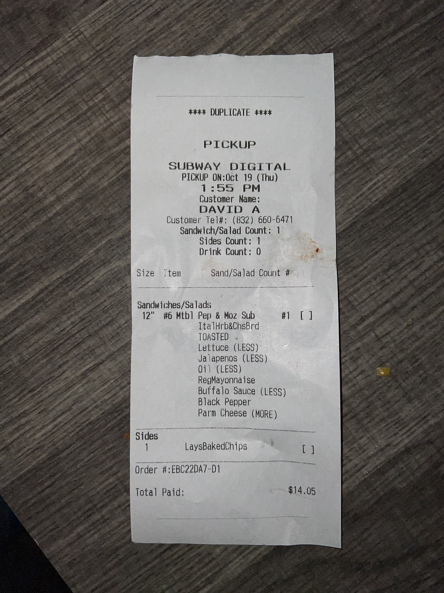 Ā Ā Ā Read moreI want to say that ever since This subway got sold it has completely gone down in customer service and quality of food. Every time I go there is something always missing, either no avocado, no some type of meat or something. None the less the service from the employees is terrible. I have been there where the two employees are in the back office hanging out and in their phones, or the employees are in the front discussing personal matters. The most recent issue is that I ordered online and when I went to pick up my order they said there was an error in the system to return in 15 minutes which I did, with the receipt order confirmation in my hand they said my order was picked up and I am like how I am just here you just saw me and told me to come back. When asked what they do in these issues to fix problem they completely turned me down. I emailed subway and called and I have been to this place 3 times now and could not get my money back nor speak to a manager. This is completely...