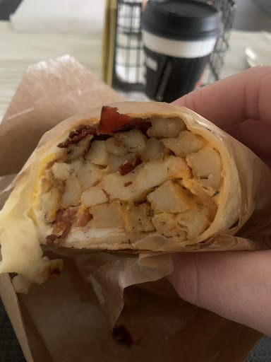 Read moreThis place is a VIBE. I had no idea it was there until a friend of mine recommended it, so of course a stop was necessary. They have a great coffee menu that is quite extensive and includes many hot and iced drink options. They had a list of syrups set out to pair with whatever drink you choose. They were Tirana syrups, which I don’t love, so it would be really great to see them expand into even better homemade syrups! I myself chose their blended chocolate peanut butter coffee, which really hit the spot. They had a case full of baked goods, as well as a savory menu with a ton of delicious sounding paninis and such. I sampled the breakfast wrap on a wheat tortilla - the spicy sriracha mayo was everything. I also loved the fun, lighthearted, and funky atmosphere! Definitely worth the stop for good coffee and eats in a...