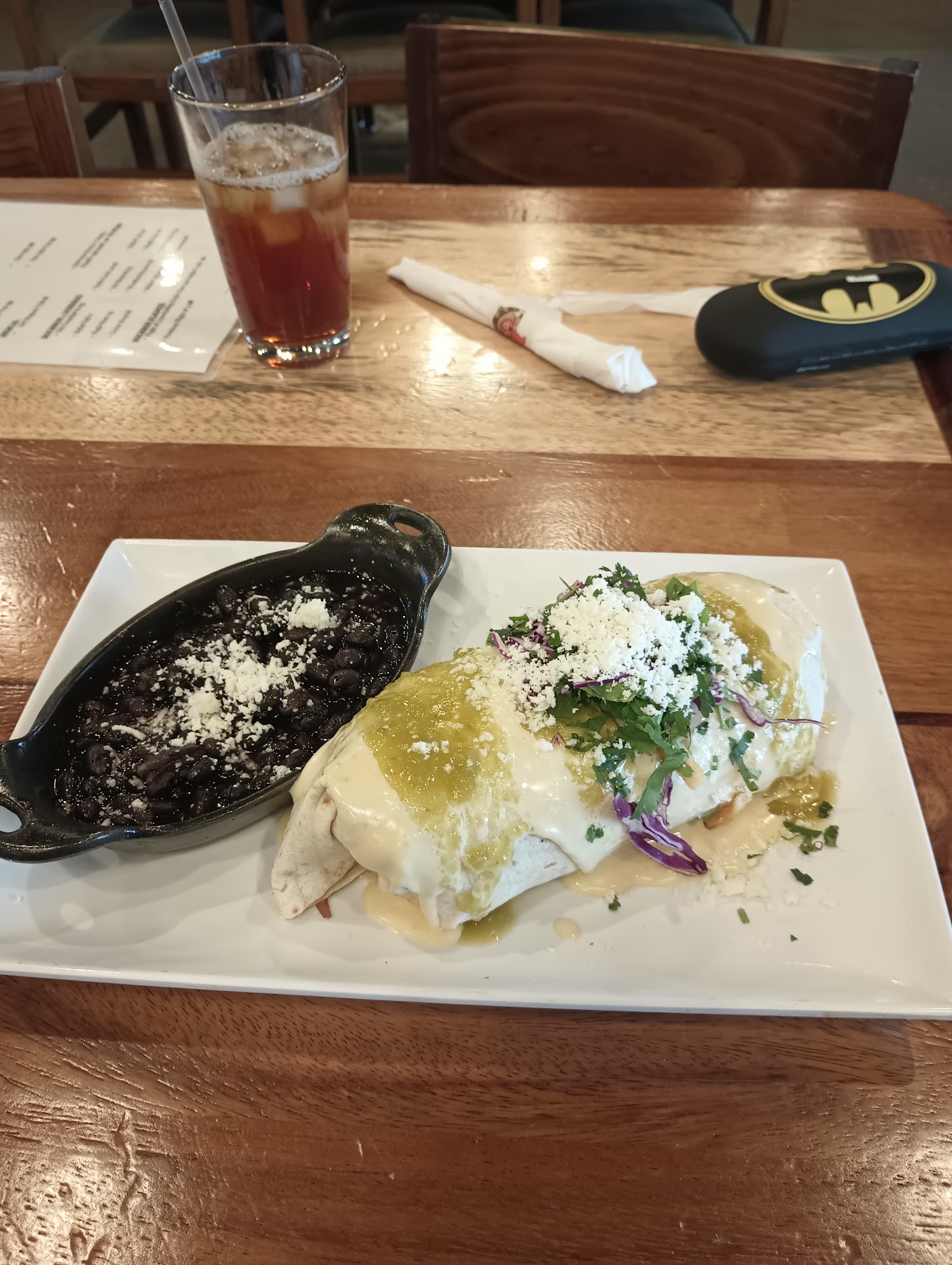 Thereās cilantro in the free salsa and was in my food that said nothing about having cilantro in it. The meat was unseasoned and bland, and the queso was watery, the limes were dried out and when my date asked for black beans he got pinto instead, that was old and tasted of cardboard.