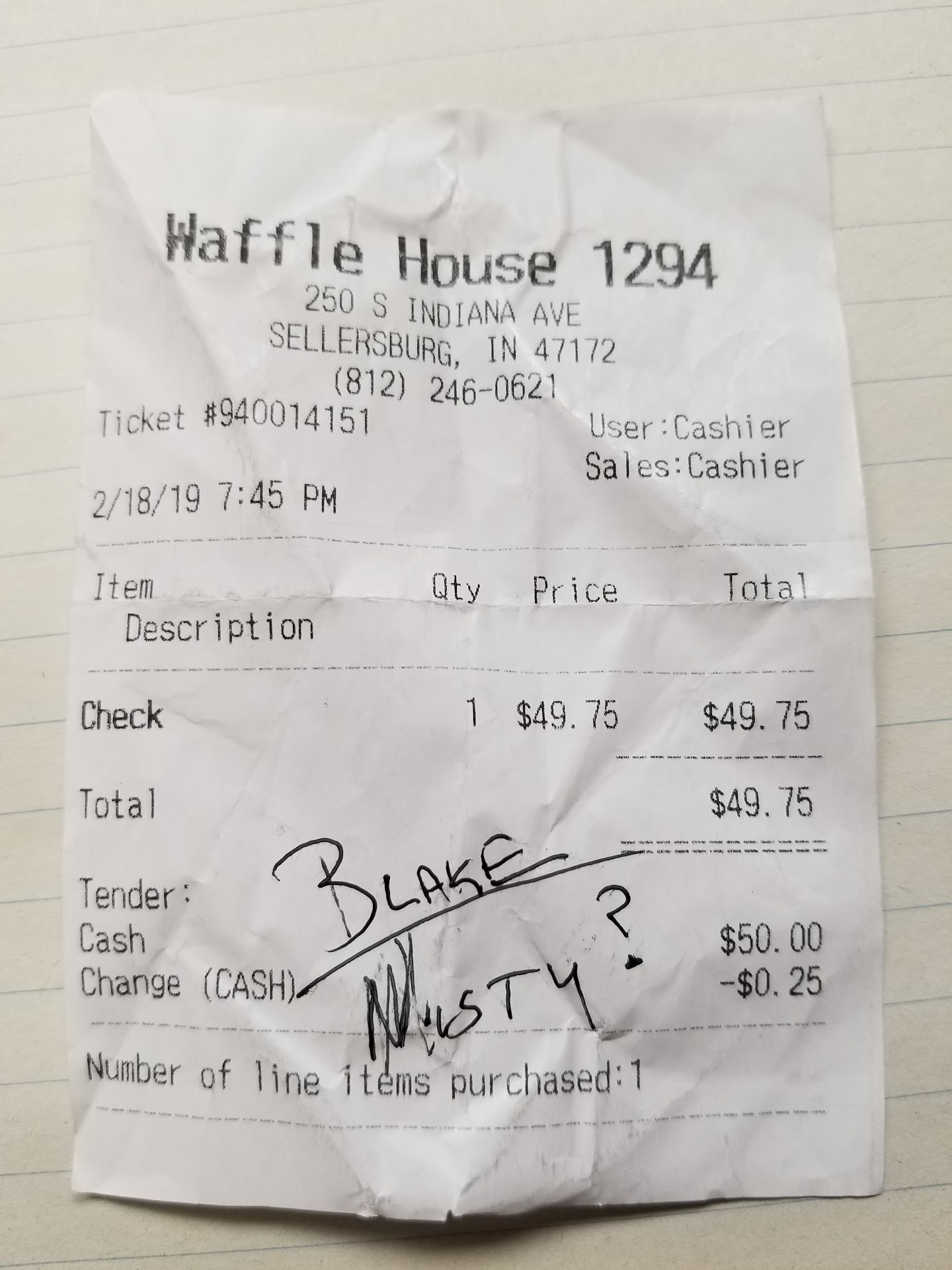 Read moreHad to drive home from work one night/morning @ around 3am. Leaving Louisville heading North on 65 needing coffee like a fish needs water to survive my 90min drive home. I seen the "Waffle House this exit" sign like a lighthouse beacon flashing for my survival on this dark misty highway of loneliness. So I take the exit an go down the road a bit an pull in the parking lot. Getting out of my truck and walking up to the door I notice there is absolutely no one else in sight except the two women working. I step in the door and ask if they had a fresh pot of coffee brewed, the one women says no the other says yes..... I'm confused? By this point if you are still reading this so are you!..... They did have coffee the one woman made some behind the other woman's back. So they may have some issues to work out between them and I? Well, I got a great cup of coffee and good service. You on the other hand need to ask yourself what did I come here looking for? This is a Waffle House review for a restaurant in middle America population: who cares! But if you are still with me, check out an awesome podcast named the "Brohio Podcast". Much like this review, it can be long and unfulfilling but somehow entertaining??? Now put your hand in your pocket and smile! Give people something...