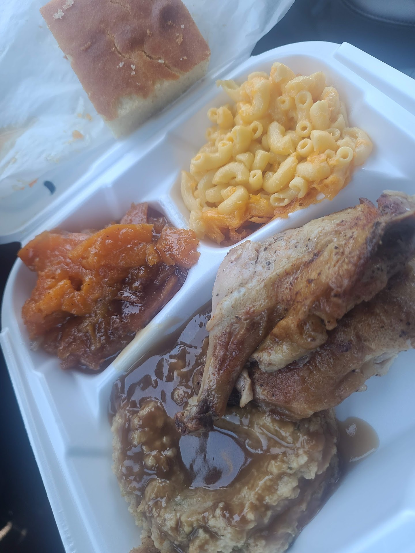 The food was great! Served buffet style for carryout, I like that you are able to see your selections as you advance in line. Very good southern homestyle classics, served fresh and hot. I certainly recommend it for a good home style meal, but I also advice making an early trip here as to beat the rush and get ahead of the crowds,...