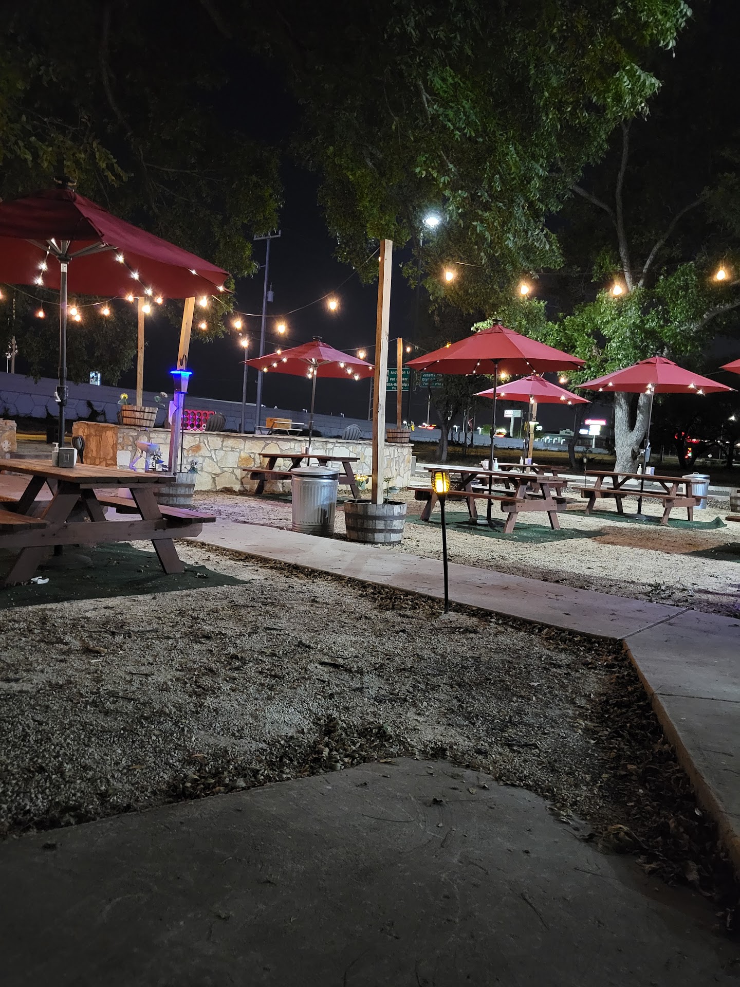Read moreRead moreAfter searching for bbq places near the Universal City/ Selma area, we came across this wonderful outside joint with high ratings. It is right off I-35 with ample parking surrounded by a canopy of trees. I ordered the 2 meat plate while my wife ordered the bbq wing plate. Let me tell you, the other reviews we read were no joke. The brisket was not too dry nor overly moist, good taste, good outer bark. Sausage was not too smoky, just the right amount of spiciness. The sides...green beans and potato salad were a good compliment. My wife's plate of the bbq wings were tender and juicy. It reminded me of a whole bbq chicken, but in wing size. But be careful....they are not shy with their size portion. She couldn't finish all six, so of course I was willing to help, lol. She also had the potato salad and pinto beans, which were very tasty. Each plate came with onions, pickles, and bbq sauce. Unlike other places, they provided a pickle spear, not slices, good for you ! Now the sauce, tangy, sweet, and kinda of hits you in the back of your mouth, awesome. As we ate, savoring our plates, the owner came out to greet us and asked if we needed anything..thumbs up on the service. To top it off, as we sat in their nice outdoor dining environment, we enjoyed the 80's playlist coming off their lantern speakers. Overall, great BBQ great service nice cool night lighted patio area 80's music....great...