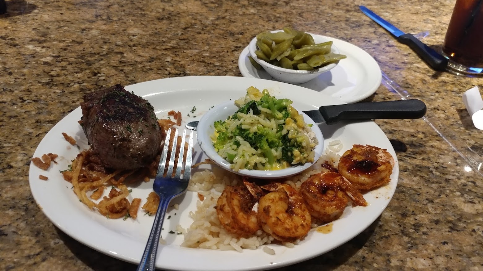 I ordered my favorite again, 8oz Sirloin, Grilled Shrimp, Bourbon Glaze on the side, and Broccoli Cheese Casserole. Steak was prepared perfectly again.. The food at this location has been consistently great.