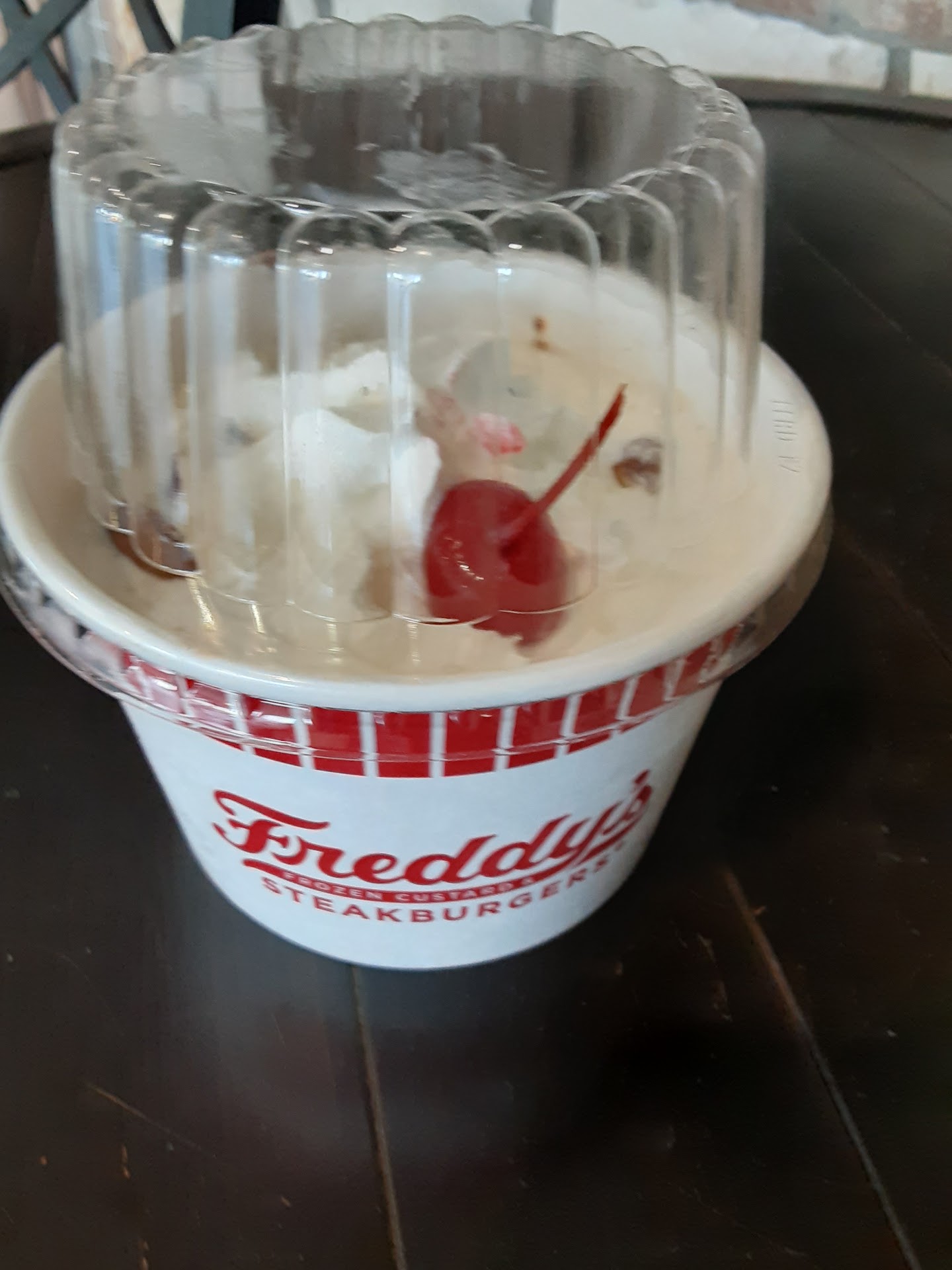Read moreI stopped by to order my Mom and I a turtle Carmel fudge custard Sundae on Sunday. As I sat and waited on them to make it ...All of 15 minutes. The employees were trying to get the drive thru orders out before the dine in and inside to go orders. The employees had no sense of urgency in getting the orders out. Some employees looked very lost, no since of direction or management. So many employees with no control and just standing around, very disorganized! Once I did see a Mgr. (as he was bringing a cash drawer to the front), I said excuse me, I've been waiting for my order its just 2 sundaes for 15 minutes and while waiting I noticed the Drive thru is getting priority. He turned to the staff and said start on her order. He went on the order line and said are those hers, "Get her out of here now!" The employee handed the Sundaes to me and I left. I wanted to bring something special for my Mom, but if I was not getting it for her I definitely would have ask for a refund. Apparently the unprofessional Mgr. has forgotten that customers patronize Freddy's and in turn this is how he gets paid.