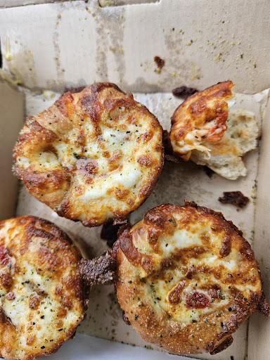 I drove away and parked. When I split one of them in half, I was so disappointed because the cheese on it was no thicker than a nickel. It was 99.5% bread, 2.5% sauce and 2.5% cheese. So I'll advise all not to order this item, unless you're only looking for...