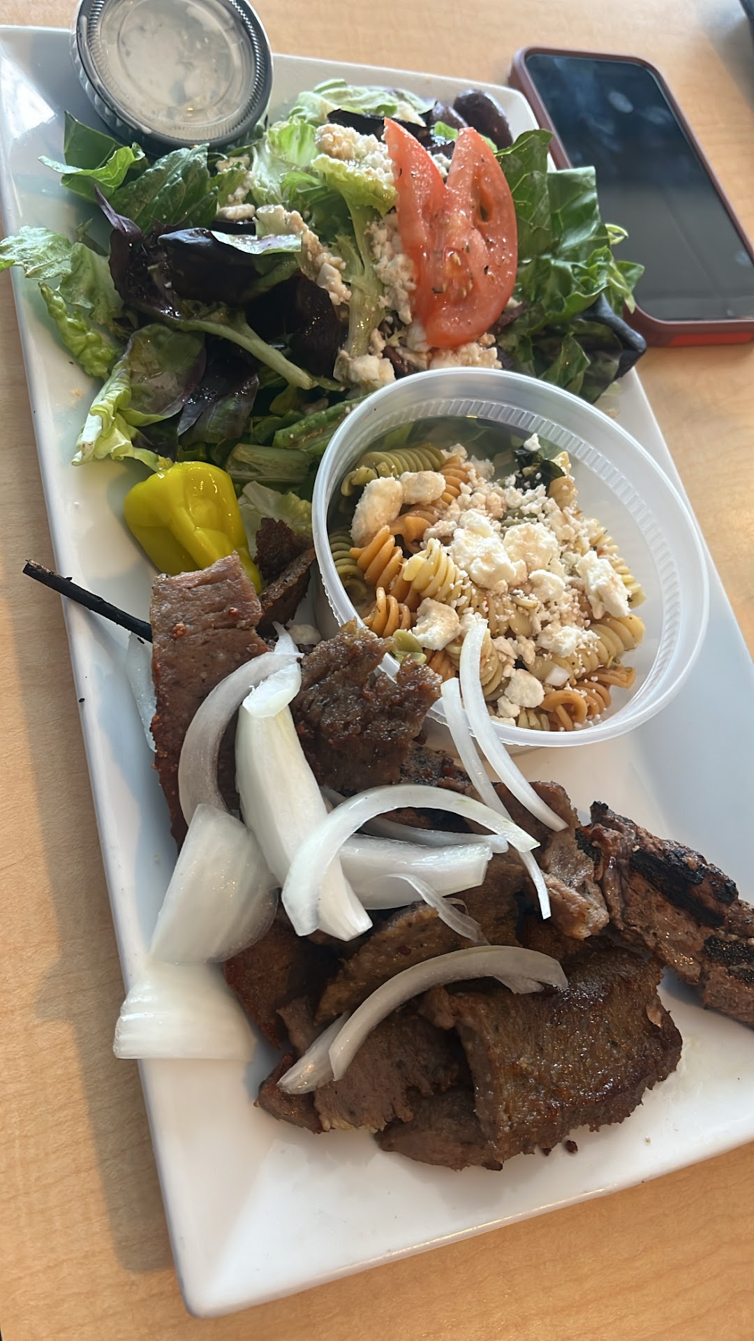 I usually order the build a plate, with double gyro meat and the fries or pasta salad as the side. It comes with a decently sized salad as well.