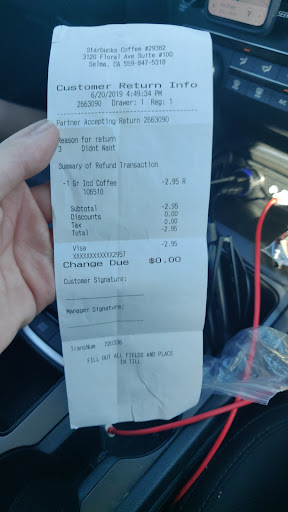 Read moreCame in to this place and ordered some hot tea and a toasted bagel with cream cheese. I know that the drive thru takes priority over the walk in clients, but...really. The tea came out, but the bagel took forever. Not even a thank you from the girl at the counter. Like she was bothered from people coming in to order. And, when I took my order to my truck, the bagel was burnt, still smoking. Now, since I like my toast a little on the dark side, I didn't create a fuss. However, this is the 2nd visit here, and the service was the same. I only come here when getting my vehicle washed. Most other Starbuck's are appreciative of their customers. They should be lucky I gave them a 3....