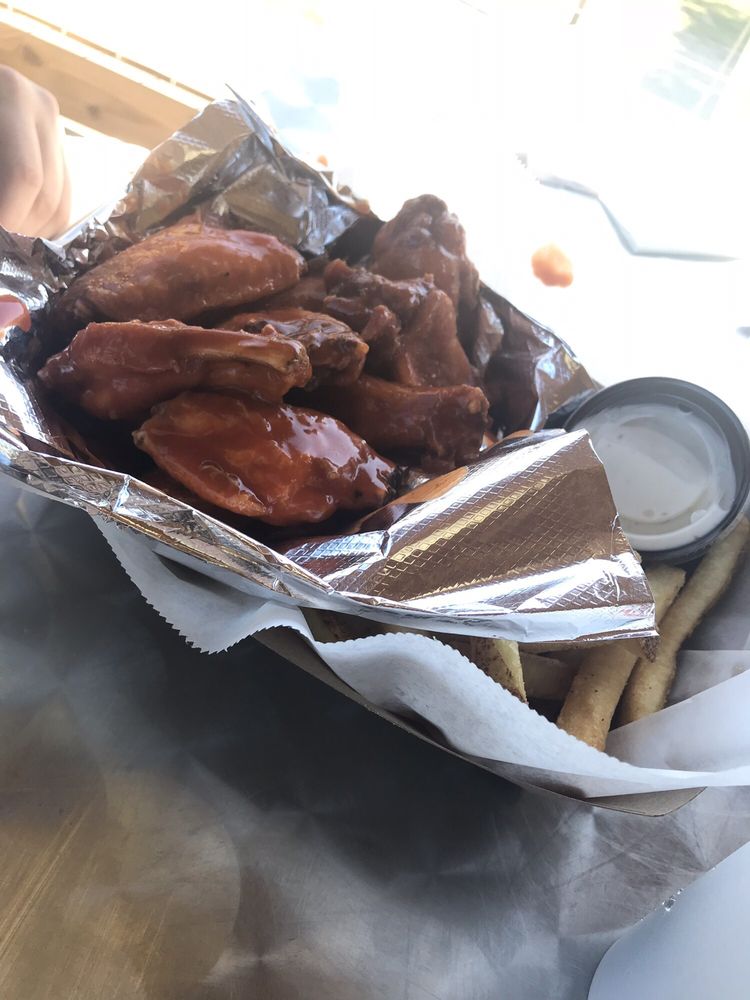 The food was also pretty good. The fries were fresh and nicely seasoned and my boyfriend liked his wings - Frank's Red Hot! The chicken tenders had some spice in the breading that I wasn't super crazy about, but they were alright. A good size for the money. The ranch tasted like it was made in-house. Yum! Other offerings included burgers and tacos.