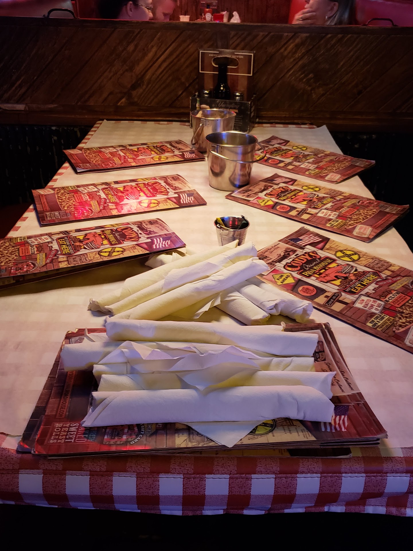 Grub: Ribeye, Mac cheese, country fried steak, rolls, pepper gravy, Cody’s steak sauce, chocolate cake, cheesecake & baked potato were delicious.