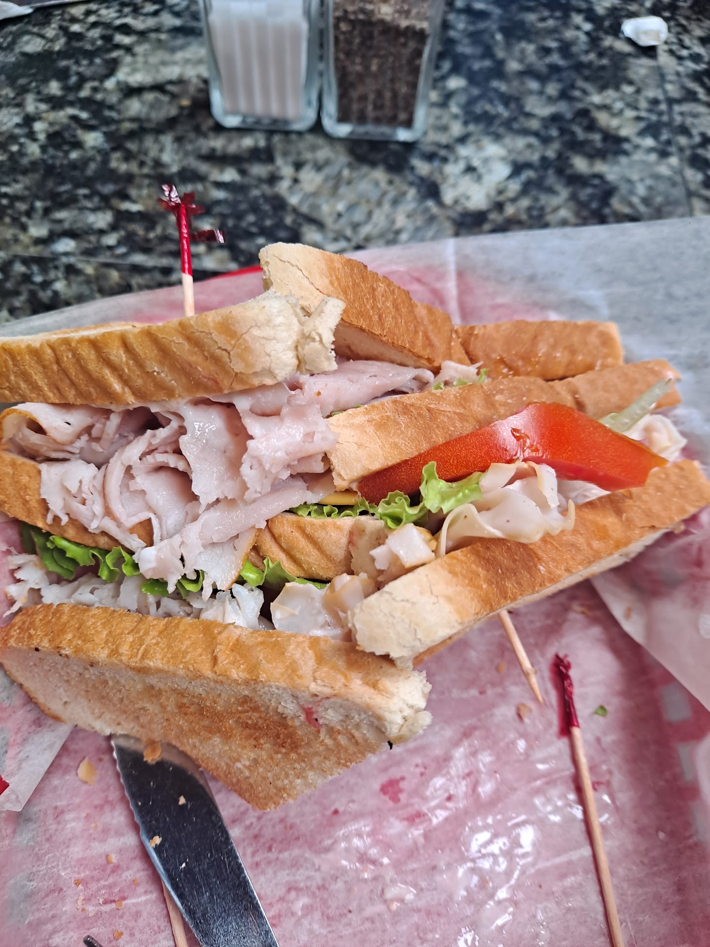 Ā Ā Ā Read moreWhat an incredible disappointment. We ordered a Reuben a Philly cheese steak and a kids grilled cheese. The Reuben was thin with an astoundingly salty store bought corned beef. The Philly tasted as though made from a microwaved filling on an old roll. It was also very salty. The kids' grilled cheese was hard and dry. To follow that, we had a very dry slice of strawberry cake and what they called a pineapple upside-down cake. The cakes, my sons gingerbread man, and even my tea all tasted about 3 days old. All of this ran us $60! As for services, our waitstaff seemed to want to be elsewhere and had on house slippers. I would rather they had spent less time and money on the over the top Christmas decorations and more on...