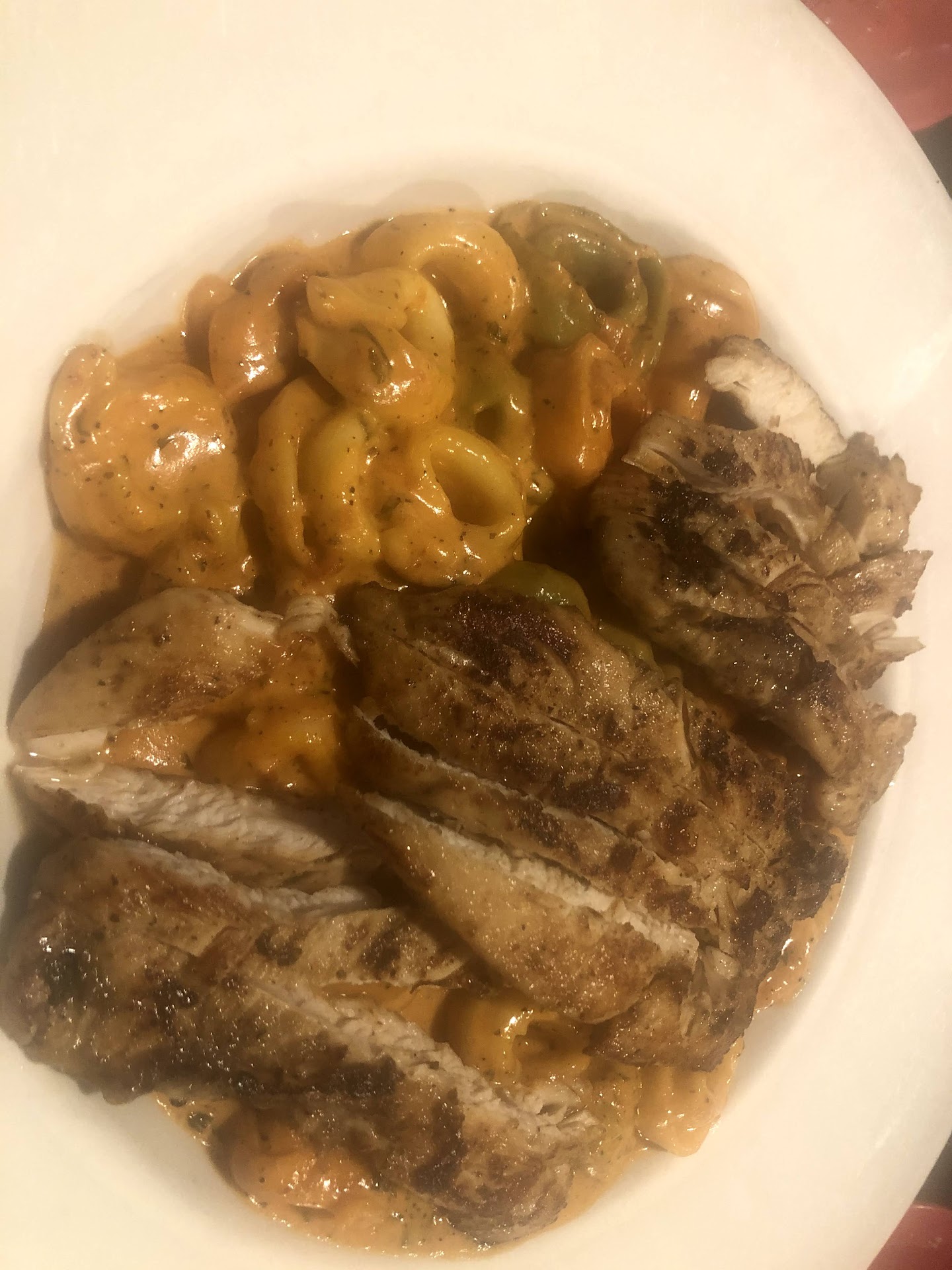 We had bread, salads, Tortellini Ala Panna with grilled chicken, sausage Pizzaola and the Pumpkin Cheesecake. Nice large portions and worth the price. Everything was delicious and we will be back and we will be telling...