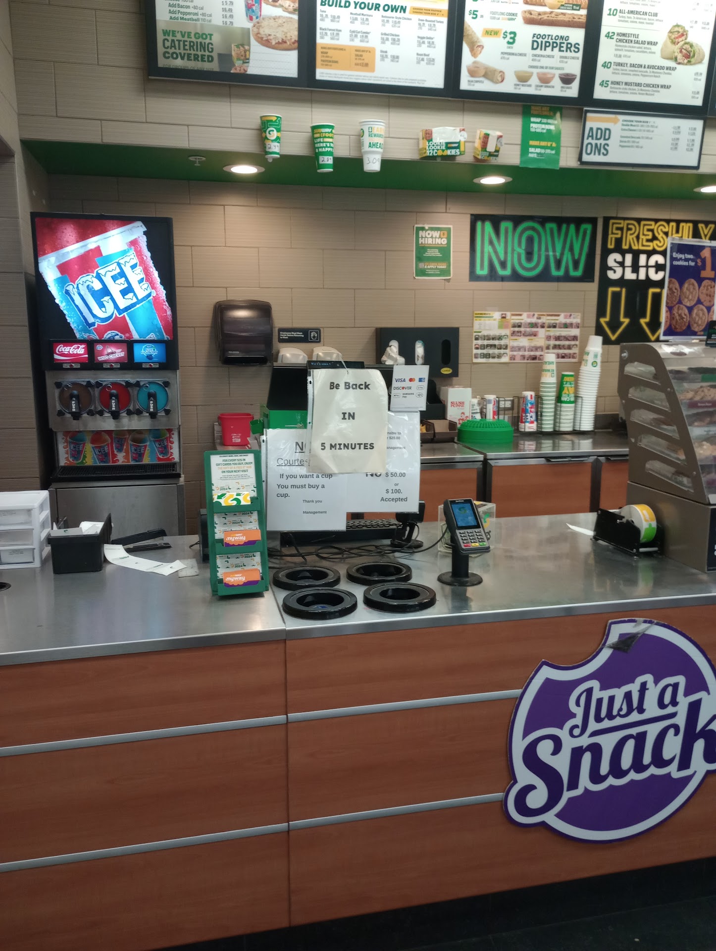 Read moreWalked up there was a line with people leave from waiting so long for the employees to bother to come do their jobs. The employee working at this location is extremely rude! To the point where we we're in the process ordering our food and he continued to argue about what we wanted on our subs. He told us we couldn't add what we wanted so we changed our order several times so we could get the ingredients we wanted. He continued to argue and up charge us on everything! We didn't even order our food since he was so rude and incompetent! I would not recommend...