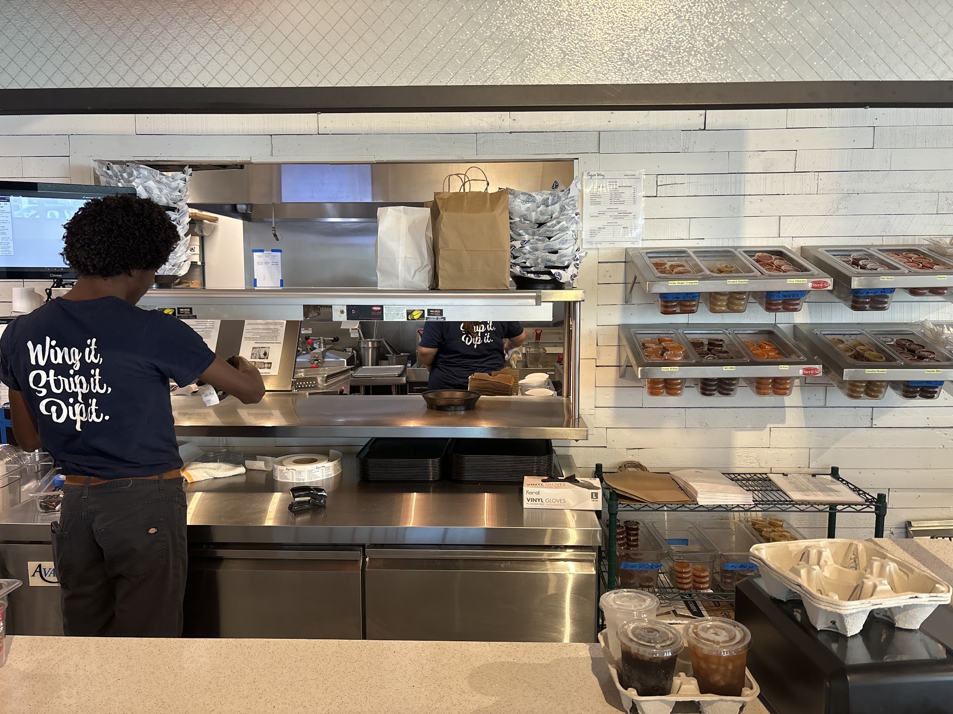 Ā Ā Ā Read moreWe tried the new Sugar Wings recently and was very pleased. Our go to chicken sandwich has always been chic fil a, however since itās being remodeled we decided to give Sugar Wings a try. Our first encounter was a dine in experience and they had been open less than two days. The Menu consisted of chicken sandwichās with their signature sauces or plain. Wings with a variety of sauces, chicken strips, or chicken salad sandwich. We elected to go with the plain chicken sandwich. We thought since they had such a variety of sauces that they should have maybe had some samples of the sauces but they did have a brief description. We decided to get the sandwiches with the ādip em friesā and a drink and some of thier sauces which you have to pay for each sauce. I was disappointed again because the food isnāt cheap but not too expensive either however , to make you pay a small fee for a small amount of sauce I think is a little ridiculous. They have a couple of touch screen monitors that you select your choices from. Somewhat user friendly, but it could be a little easier however we navigated it just fine and paid with a credit card as they are not cash friendly. Your receipt has a number on it for your order so once you complete your order you can go find a seat. They do have a good amount of tables and chairs to choose from. The atmosphere is pretty plain and simple but we werenāt out for a fancy lunch, so it suited us just fine. It took about 10 minutes to hear our number and we picked up our food and drinks from the food counter. I personally think they should give you the drinks while you wait but wasnāt a big deal . They had a decent selection of soda, but the tea and lemonade is very good! Now to the food! The chicken sandwich was phenomenal in our opinion. Was very fresh, good sized and the breading was light. The dip em fries are excellent too. Iām a huge fan of waffle fries from our normal place however these are really good ! I tried the malt vinegar aioli sauce for the fries and it was delicious! The mighty Quinns BBQ was good on the sandwich too! Overall, it was a good meal and experience. We did come back and did takeout a few days later. Food took about 15 minutes this time as more people were there. Food again was good however we paid for cheese fries and they forgot the cheese. Definitely will be back and if we have the time to spare, this will probably be our go to chicken sandwich place even when chic fil a...