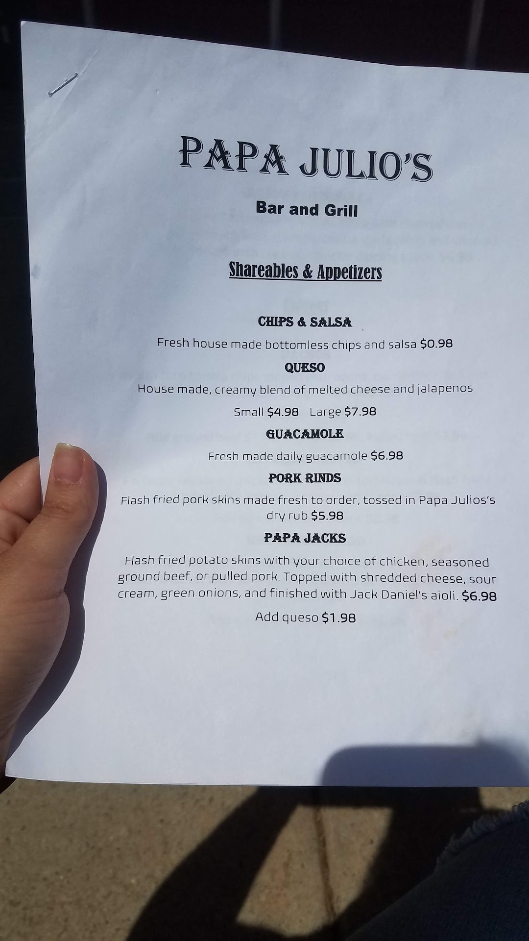 Original Review 3 stars: Note: this place is basically a bar with appetizers. They have about 4 entrees. I've attached photos of the menu. I strongly (STRONGLY) recommended the elote bites. They are AMAZING. The taco trio was highly underwhelming. The chicken taco was clearly the best. The rest were meh. I paid about 40 bucks for an entree, two appetizers, and a coke. Tbh the only food worth the money were the elote bites. There are so many great Mexican restaurants in the area (read: Los Arcos in Walhalla), I will not be...