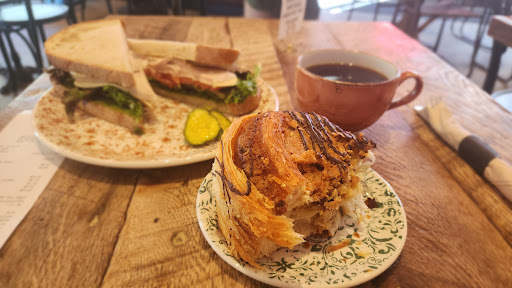 Read moreLunch with a dear friend at Mediterra was a delightful experience. I ordered the turkey sandwich—house-brined and slow-roasted turkey layered with creamy Havarti, zhoug (a vibrant, spicy cilantro sauce), lemon aioli, fresh tomato, and mesclun greens, all tucked into hearty Heartland grain bread. The sandwich was outstanding. The zhoug added a bold, herbal kick that was beautifully balanced by the bright, tangy lemon aioli—I couldn't get enough! To drink, I chose the honey rose specialty latte. It was subtly sweet, delicately floral, and incredibly satisfying. My friend opted for the shakshuka—simmered spiced tomatoes with braised eggs and fresh herbs, served alongside crusty slices of baguette. She found it perfectly seasoned with just the right amount of heat and loved every bite. We look forward...