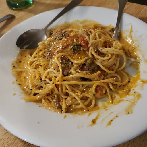 Read moreTavi's unusually shaped restaurant doesn't lend to the romantic ambiance you would usually expect. However, don't let that stop you from enjoying some very delicious Italian food. Tavi's feels more like a Cafe than an a restaurant. The ambiance we did enjoy was the music. There was a nice mix of oldies, jazzy, Frank Sinatra type music which we really enjoyed. Probably the one thing we didn't like was the lack of alcohol, however, we ran into this at other local restaurants so not serving wine or beer may be a local thing. What was really nice was that we were informed that it is BYOB. Who doesn't enjoy a glass of wine with their pasta? Our server even directed us to the closest liquor store, which I went to after we ordered. I ordered the Roma Specia with chicken from the front page and swapped spaghetti for linguini. My husband had Scarpella (?) With veal. It's so nice to get veal and Tavi's offers veal on almost every dish. Bonus! The Italian sausage in my Roma was very tasty. We really like Italian sausage and this one was extra yummy. Each dish seemed to be on point! Just enough sauce, right amount if veggies. No sparing the protein. And flavor abundance. Our entrées came with salad and fresh rolls. I tried the tomato based vinegrette. It was good, just a bit sweet. The rolls were light and fluffy and quite tasty. The service was very kind, helpful and accommodating. The food was Very tasty. The atmosphere was ok. Had they not had great music suited for an Italian restaurant, it would've totally felt like a café. We didn't bring the dog and I don't think we could've brought him inside. If we had to sit outside, I think we would've left as the tables look like they were picked up in the side of the road. Thank goodness it looks nothing like that inside. Night and day different, which is odd since people see the outside first. One big bonus... they brought chilled glasses for the wine and beer we BYOBed. Kudos!!!!! AND they have a cork screw, which the liquor store didn't even have. Go figure. Thank you, Tavi's! You...