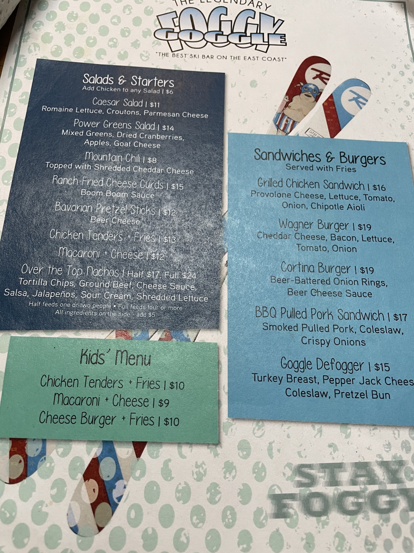 Read moreThe Goggle is a fun place for a drink! However, we had an awful experience trying to grab food after a morning of skiing. Like many establishments on the mountain, seating was self arranged. It’s your job to scout out a table and swoop in once the previous party leaves. After waiting an hour for a table to clear this weekend, my girlfriend and I were instructed by a staff member that we would need to get up because they “do not split tips”. We explained multiple times that we had closed our tabs at the bar from our over 1 hour wait for the table, and still very much intended to purchase food, drinks and ultimately tip this server. Despite that, the server continued to assert that would not be allowed, and that we would need to remain standing. Super great way to treat...