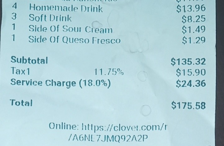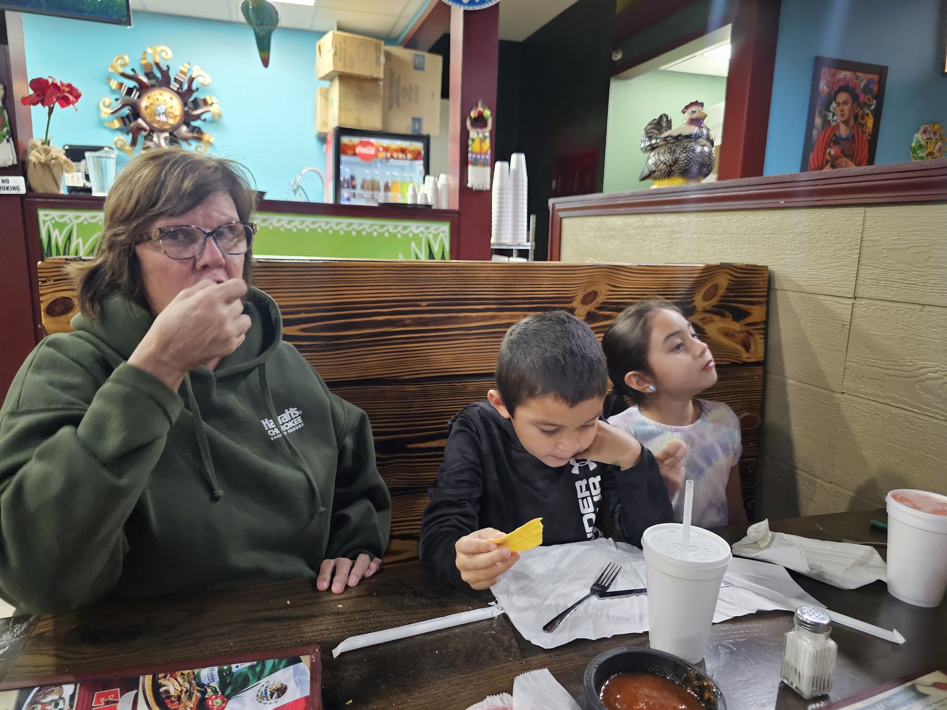 The waitress took our drink order. She brought back our drinks, 1 salsa, & 1 basket of chips for 6 people to share.. We had to ask for salsa cups, since our kids couldn't reach to dip their chips. She brought back only 2 for the children.
