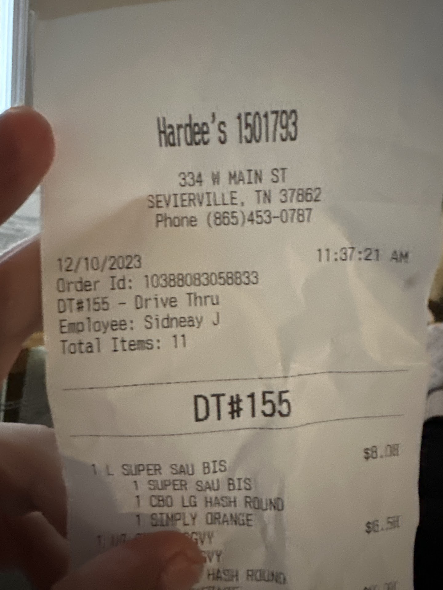 Ā Ā Ā Read moreHad to wait over 20 minutes for them to get my to go order up to the counter and then they didn't have all of my order in the bag. While waiting for my to go order I saw the drive thru take several items from the line and send them out before making sure that the inside to go order was complete that was there before their drive thru orders were taken. While I was waiting there was several people that came either back to the counter from inside orders or drive thru orders that were missing items from their orders. I believe that to go orders that are placed before drive thru orders should be made correctly and complete before you start losing a lot of business. It's sad that I had a tourist that was waiting for their order as well to ask me if I lived around here and I said yes. They said that they wouldn't be back and didn't see why I came back to a restaurant that was not able to get orders out correctly and in a timely manner. This happened at the Hardee's in front of Tractor Supply and across from Sevier Farmers Coop on Main Street. The date was Sunday March 31st, 2019 between the hours of 1030am and 1100am by the time I finally got my order correctly. Very disappointed with the customer service that I received. Don't know if I would suggest that anyone go to that location or not. I don't think I'll go there again. Looks like I might consider either the Knoxville or Morristown locations for my future purchases. There would need to be a drastic change in the customer service before I would consider trying that...