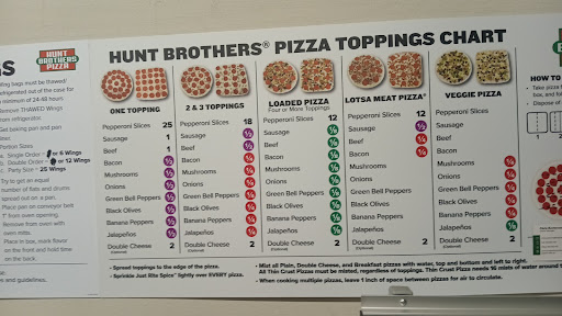 Convenience store-based pizza chain doling out create-your-own pies along with wings.