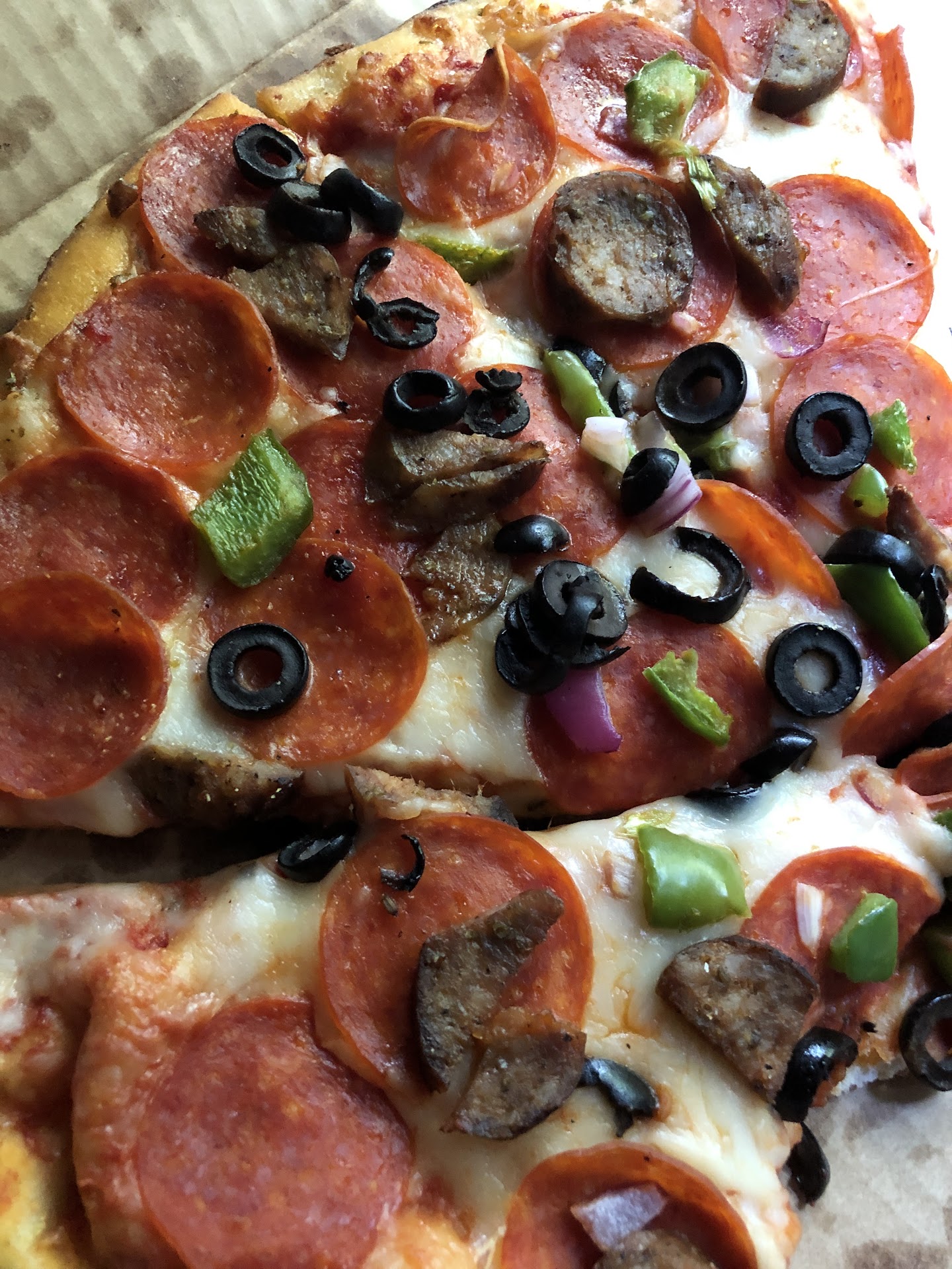 Now ,if you’re not in a hurry and you like sauce the deep dish almost Chicago style pizza is where it’s at. It was a little thinner crust than the toppings another layer of crust and then their sauce sprinkled with Parmesan cheese on top. This is not on the menu. I saw it on Facebook and asked them about it and they made one for us. We will definitely be back when we return to the...