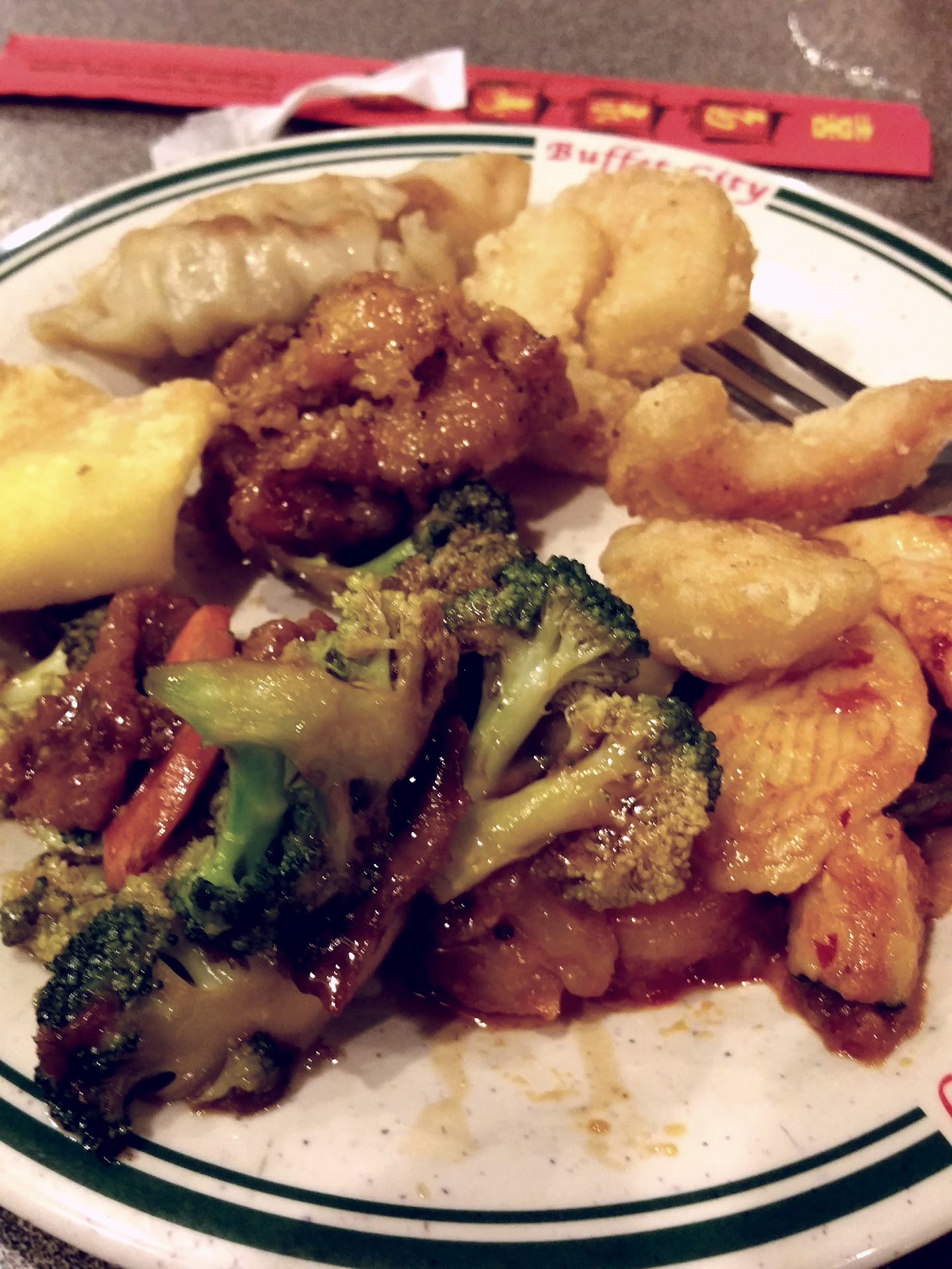 I had good chicken on a stick, dumplings, chicken wings, beef broccoli, crab casserole, and a bunch of other stuff that looked weird but tasted delicious. I recommend the hot pockets - they're breath taking. The dessert bar had ice cream and a bunch of pastries from a box but hey.... It's less than 7 bucks a person. There were a lot of fat people at the buffet (including me) so that's always a good sign. I took one star away for 1) temperature of the restaurant which was a little warm for a restaurant. 2) the ice cream scoop holder that didn't appear to be working properly and didn't look very sanitary. 3) for the Damn Chinese waitress who kept yelling stuff in Chinese and made me think she was talking to me - when I said, "do what?" and "arigato" she looked at me like I had three heads. 4) I looked everywhere and was slightly disappointed that they don't serve chickity China the Chinese chicken. Maybe the Mexican guy at the Mongolian station will make it if you ask but I think it should be standard on the buffet and you shouldn't have to ask for it. I was looking forward to a chickity China the Chinese chicken drumstick because everywhere I've had it it makes my brain keep ticking.