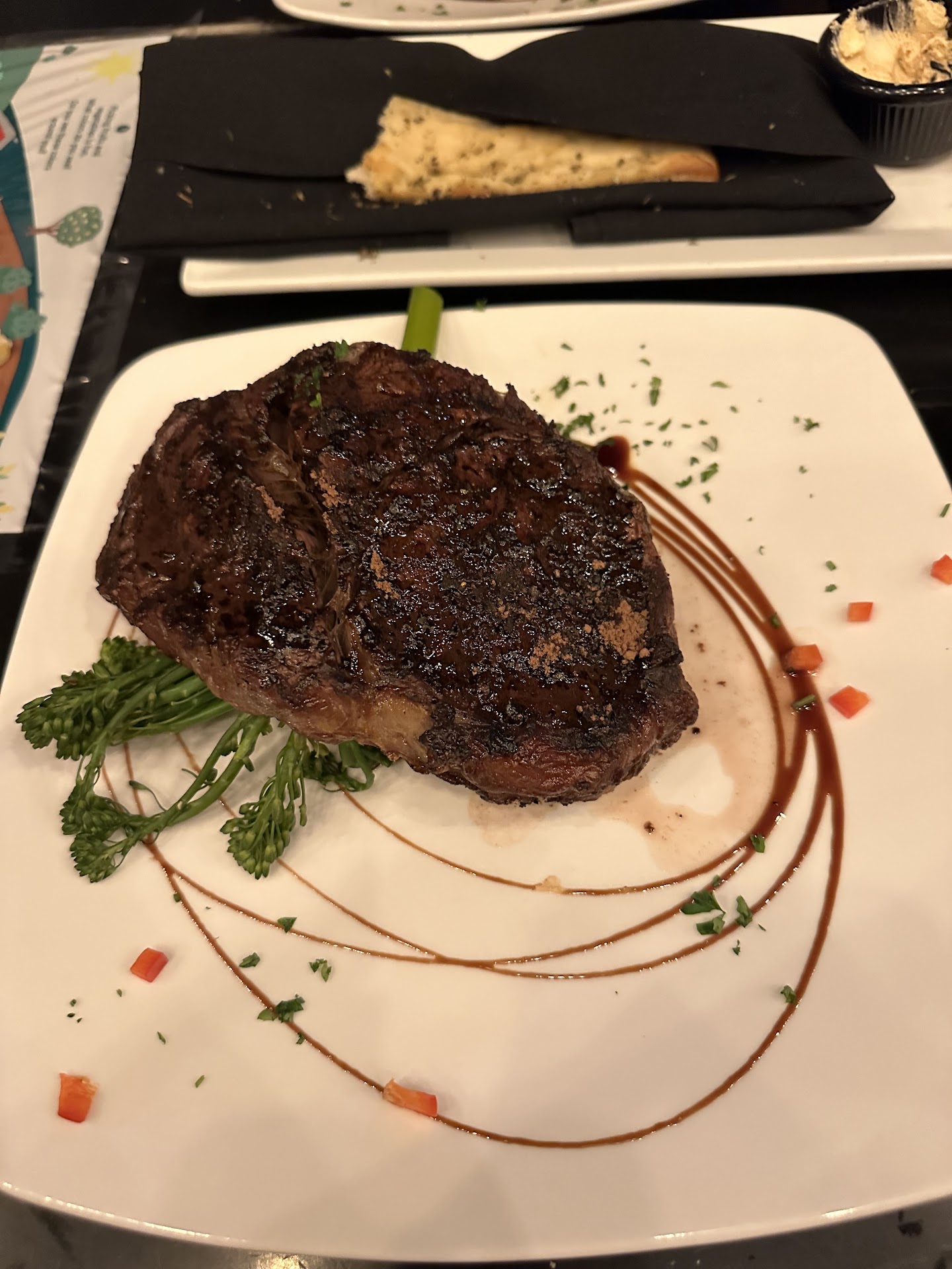 Read moreThis was our first time visiting this restaurant. We had a reservation for later in the evening but the hostess was able to work some magic and seat us right away. The ambiance is lovely. We sat down to order a couple of cocktails which took a reasonable amount of time. We ordered our meals within 20 minutes of being seated and ordered another cocktail at that time. Unfortunately our server was not attentive in the slightest. We observed every other table around us receiving regular checks and refreshes by their servers. It took at least another 30 minutes to receive our next cocktail. Tables around us were being served their food and beverages in prompt fashion. Our mood started going downhill. New diners came in all around us. The new diners received appetizers well before we received our meals. Finally our meals were delivered 1.5 hours after being seated. We didn’t even order any appetizers. 2 meals. Their seafood special and a ribeye. Diners around us seated at least an hour after us had drinks and appetizers before our meal, and right after our meal came out they received theirs in quick order. Unfortunately my husbands steak was chewy. The flavor was great but when expressing the texture to our server, we were told that he had been noticing steaks from the store being less marbled and wondered if this had anything to do with beef being more grass fed. Didn’t offer to take anything off of our bill or refire a steak. A steak strait from a grocery store should be a much different quality than a 30 day dry aged ribeye. Period. By that point we just wanted to leave. We finished our meal then sat and waited for our server to give us the bill, much longer than it should have taken. After delivering the bill we waited and waited in order to check out. We were at the restaurant for 2 hours with a small child before finally getting the manager to ring us out. Our bill was not cheap. The service was terrible. Our meal was uncomplicated while others received timely service around us. It’s unfortunate because my meal was delicious, the flavors were great on the steak just not a good texture. Others were obviously receiving attentive service and good food. When your bill is $140 for a couple of cocktails and 2 meals, you expect a certain level of quality. I don’t know if...