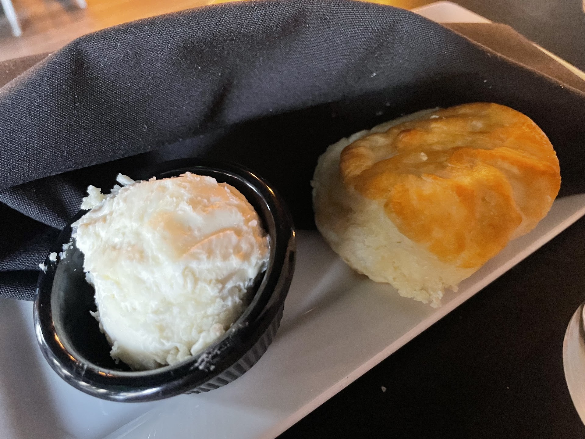 Read moreThe food at brunch was easily a 5. I ordered the Blue Crab Cakes Benedict which comes with breakfast potatoes. Upon being seated, a warm biscuit with delicious honey butter was brought to the table. The potatoes were the best I’ve had at a restaurant. They reminded me of these grilled potatoes my dad used to make. The portion of crab cakes and eggs was on the smaller side but very tasty. Service could have been greatly improved. My server came over and asked if I was ready to order. I had a menu question so I said, “Well…” and he immediately cut me off and said “ok, I’ll come back” and walked away. I ordered hot tea and was not given cream and had to ask. My check was immediately brought with my food and I wasn’t asked if I’d like anything else. It’s not uncommon for me to eat a meal at a restaurant to try the food and then order something to-go for later if it’s good. The service that other parties who were ordering alcohol received seemed totally different. One server sat down at a table at chatted. While that’s a bit much, my particular server initiated conversation about local spots with another table. Just because I’m a single guest who is not ordering alcohol, I still expect the same level of friendly service. Before leaving, I tried to strike up a conversation by telling the server brunch was great and I was curious about how dinner was. He said, “dinner is a whole different story, I mean brunch is ok but dinner is excellent”. I don’t think disparaging the food is a good vibe, especially at a place that seems to be on the higher end. The hostess and one of the servers were having private conversations that could be overhead while I was waiting for a table. I’m unsure why there was a wait since most tables were open. The conversations centered round morning routines and having a morning smoke. Again, I don’t think this fits the professional vibe of the restaurant. Overall, the food was so delicious, I wouldn’t hesitate to go back. I do think certain servers/staff could use a reminder about quality hospitality. I saw and heard one server who seemed to be doing an excellent job. The runner who brought my food was also pleasant. The dinner menu looks incredible and I hope when I return, I’ll be more impressed with the overall experience. *Thanks to the restaurant for taking the time to thoroughly read my review and respond to my concerns! Yes, the server did interact while clearing the table because as I said, I initiated a conversation by asking about dinner and complimenting my brunch. I’m excited to see the new pastry/coffee spot you’ve opened. I’ll definitely be back to visit and will update my review afterwards (hopefully...
