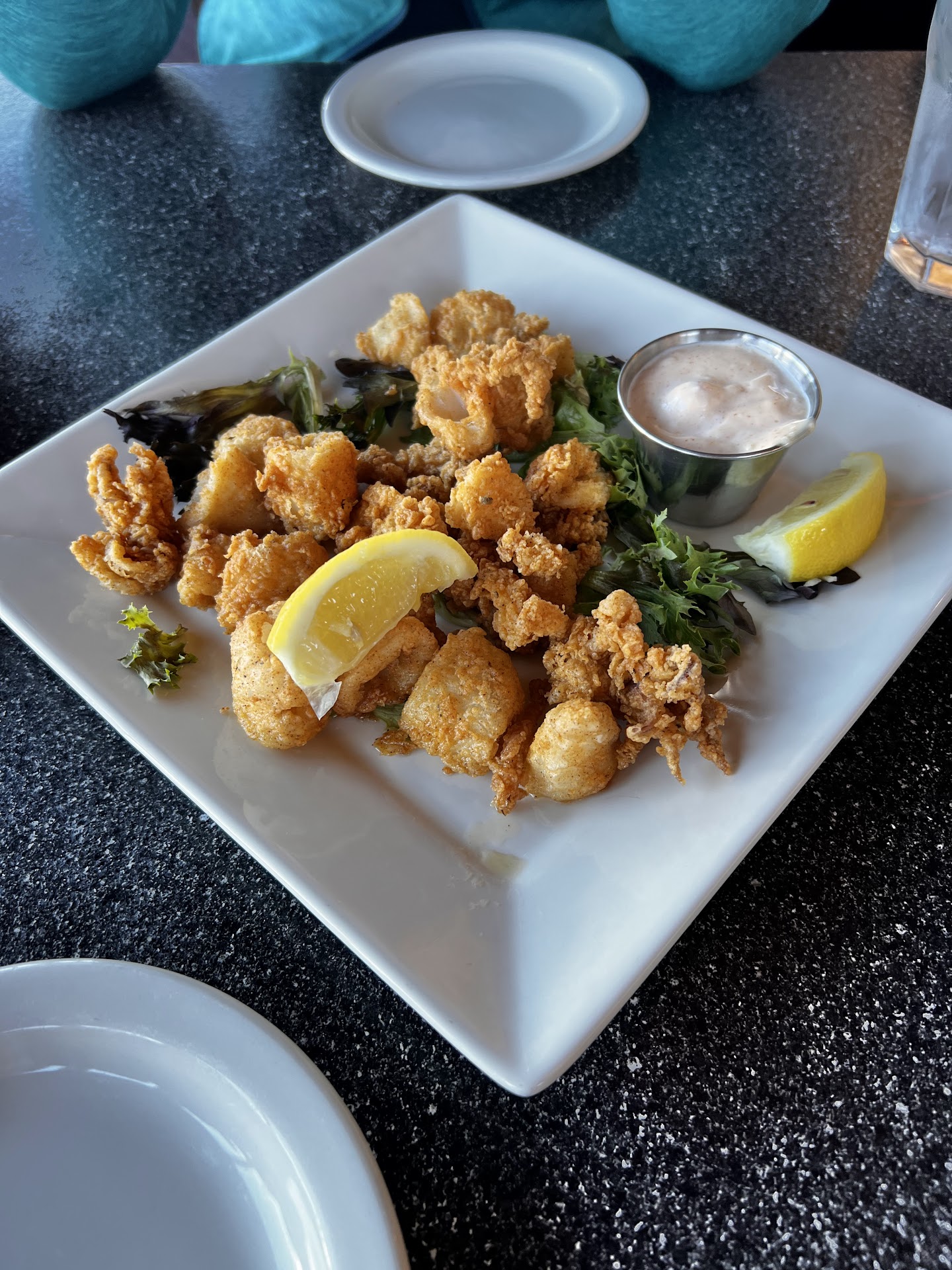 Read moreWhile in town for work, I ate three times at Rays. Twice for dinner and once for lunch. As you can imagine it was great since I was here not twice but three times. âšâšFor dinner the first night I had the Halibut Andaman as an entree with the seafood chowder and calamari as a starter. The chowder bowl was huge and delicious, a very solid 9/10. One thing I always find funny on a seafood chowder vs clam or salmon, is the seafood can be quite nebulous since you donât know exactly what it is youâre eating; either way it was great and would definitely get again. The calamari was out of this world and I can say easily, the best Iâve had and Iâve had a lot of calamari from many great places in my life. The main dish, the halibut, might be the best seafood entree Iâve ever had; Iâm hesitant to label things that way since itâs hard to be certain on the best if you donât have them lined up but no doubt this dish is and will always be in the conversation. The halibut was served with a crispy baked breading and smothered in a delicious curry sauce and sided with broccolini. My wife had the seafood linguine which was also very good.âšâšThe next day we stopped in for lunch. We once again had the calamari and I had the salmon tacos for an entree. Again, the best fish tacos Iâve ever had and itâs not even close. I was in San Diego for Cinco De Mayo a couple weeks back for work and had no shortage of delicious seafood tacos but none of them came close to this. The salmon was blackened with a pesto aioli that was unbelievable. My wife had a fried shrimp lunch which was amazing. The breading was clearly in house and just delicious.âšâšThe last meal we had I ordered the clams as an appetizer since weâd twice had the calamari. I wasnât a big fan of the clams to be honest but it was okay. I had the glazed salmon for dinner which again was good but didnât live up to either of the experiences Iâd had prior.âšâšAll in all this place is a home run for me. Very seldom do you go somewhere that has the view and food to match, usually itâs a trade off. This place had views to die for with the food to match.âšâšJim, if youâre reading this - I think itâs strange that you read...