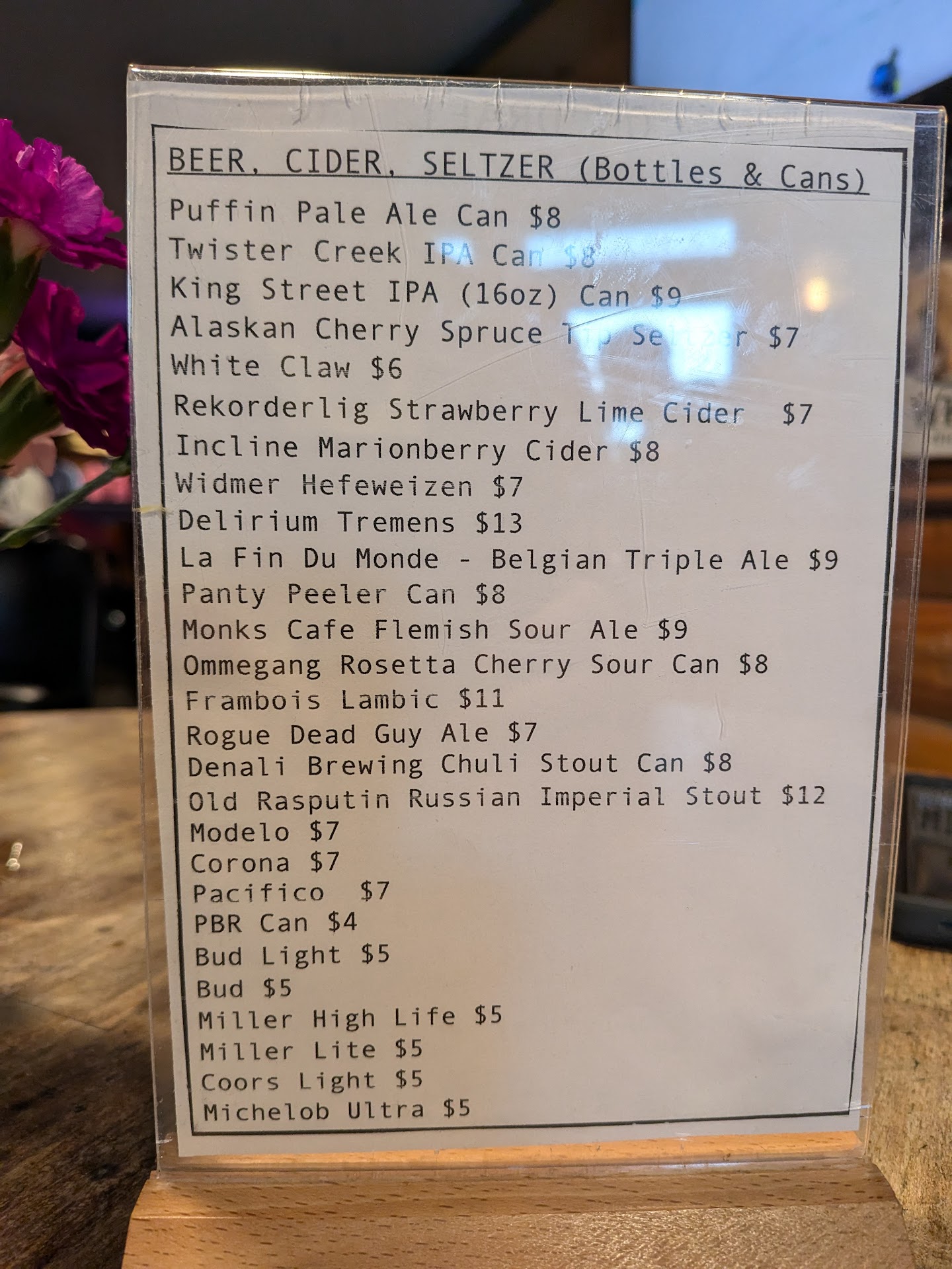 I stopped in to pick up a growler and a T-shirt. I love in Alaska and collect the growlers from all the breweries located here. Finally caught Seward on a day they were open (they are closed half the year and Tues and Wed). There were glass growlers and metal ones on display, but the lady working the front counter said they no longer sold the glass growlers that they had on display (three of them). Imagine my surprise when she told me the price of their metal growlers were $80! That is almost double the the next most expensive growler I’ve been sold in Girdwood at $45. Those were double insulated metal growlers as well. $80 is an absolute ripoff and you’re obviously trying to take advantage of the tourists coming through town. This place can kiss my &)@ for that...