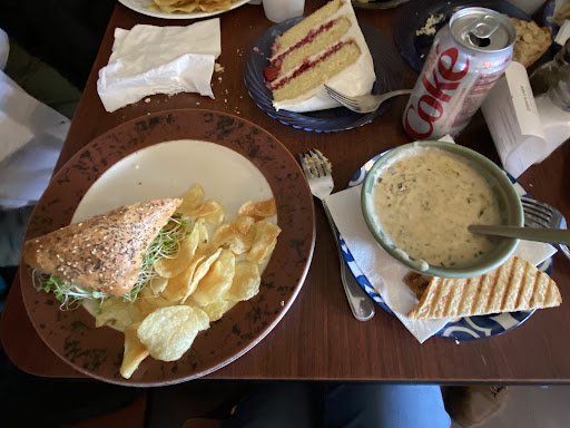 We had a Reuben sandwich, fries, and vegetable soup. The sandwich had only a thin layer of meat so essentially what we actually got was a cheese, sauerkraut and thousand island dressing sandwich. The other problems with it were it was not hot but barely warm and toasted dry using no butter. It probably sat a while before it was given to us.
