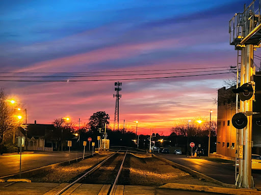 PS. Shot this sunset on my last night in the Heartland. Funny thing. I was looking down the rails in front of Rails (the eatery) in the City known for the guy who sings about “kids growing up in the heartland.” How fitting for a wonderful time at your establishment.