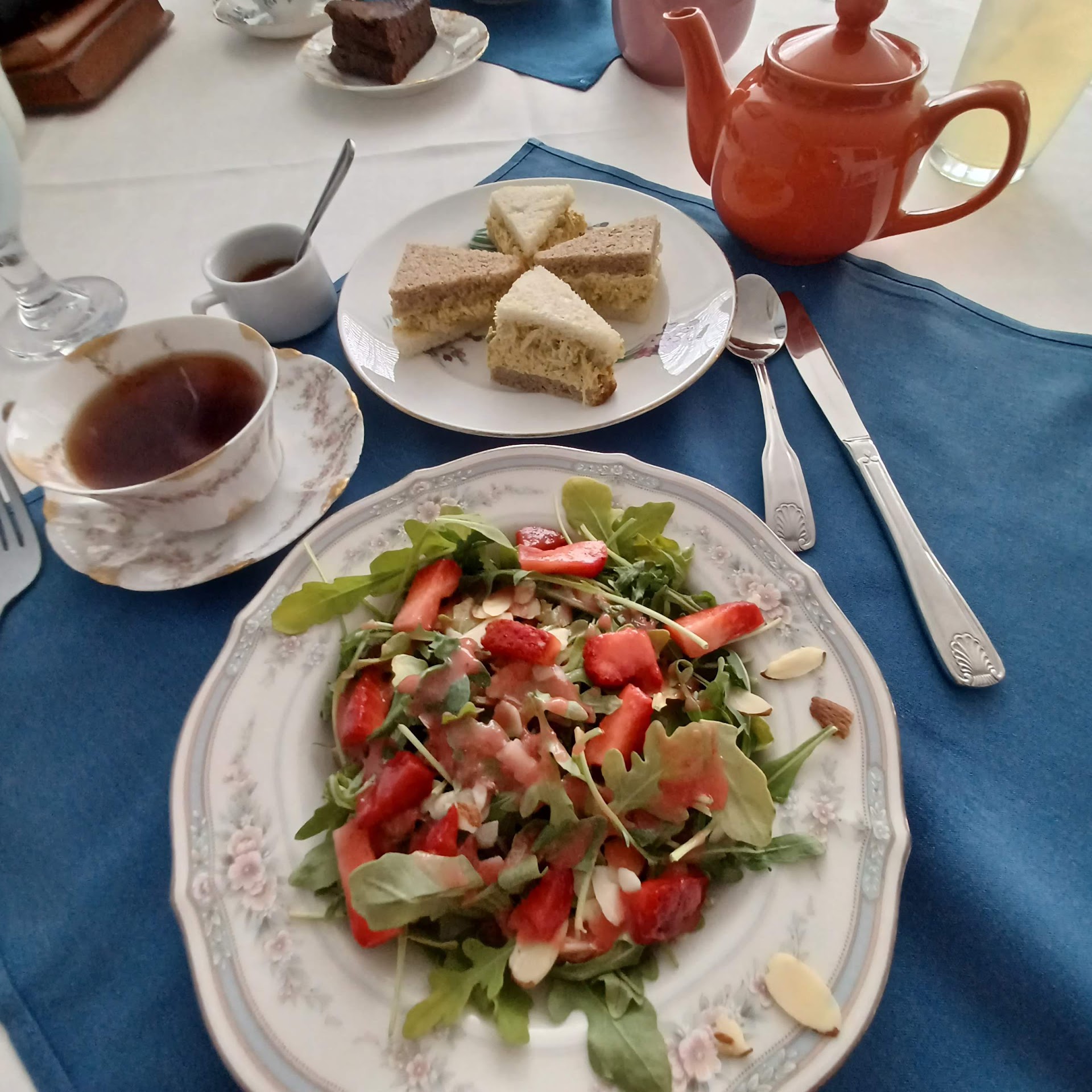 Read moreWe went to Connecticut to spend the day with my aunt. Listing your establishment with Groupon offering a discount certainly works, because that is how we found this quaint little gem that was so perfectly suited to our needs. We made sure to call ahead and make a reservation, and were easily accommodated with that (perhaps some luck). When we arrived, we were able to use our Groupon without a hitch. We did not get to choose our salad (they had run out of the strawberry arugula), but hey, I was happy to be getting a salad along with my “afternoon tea.” It was all just the right amount too! The sammies and scones were scrumptious, the tea tasteful and tranquil, the desserts DEVINE! The variety was enough too. All exceeded our expectations just enough to make us returning customers...at full price if we must!