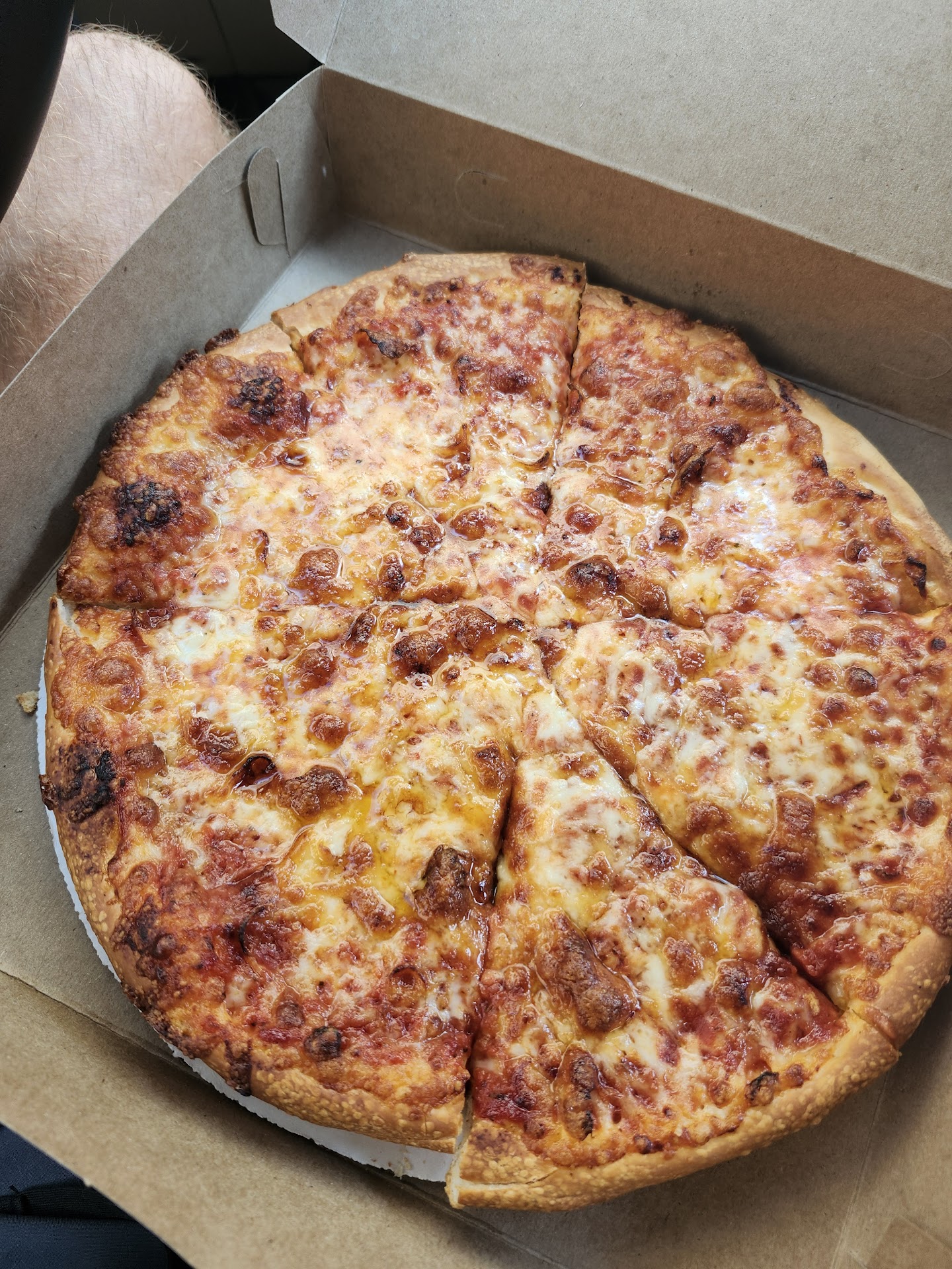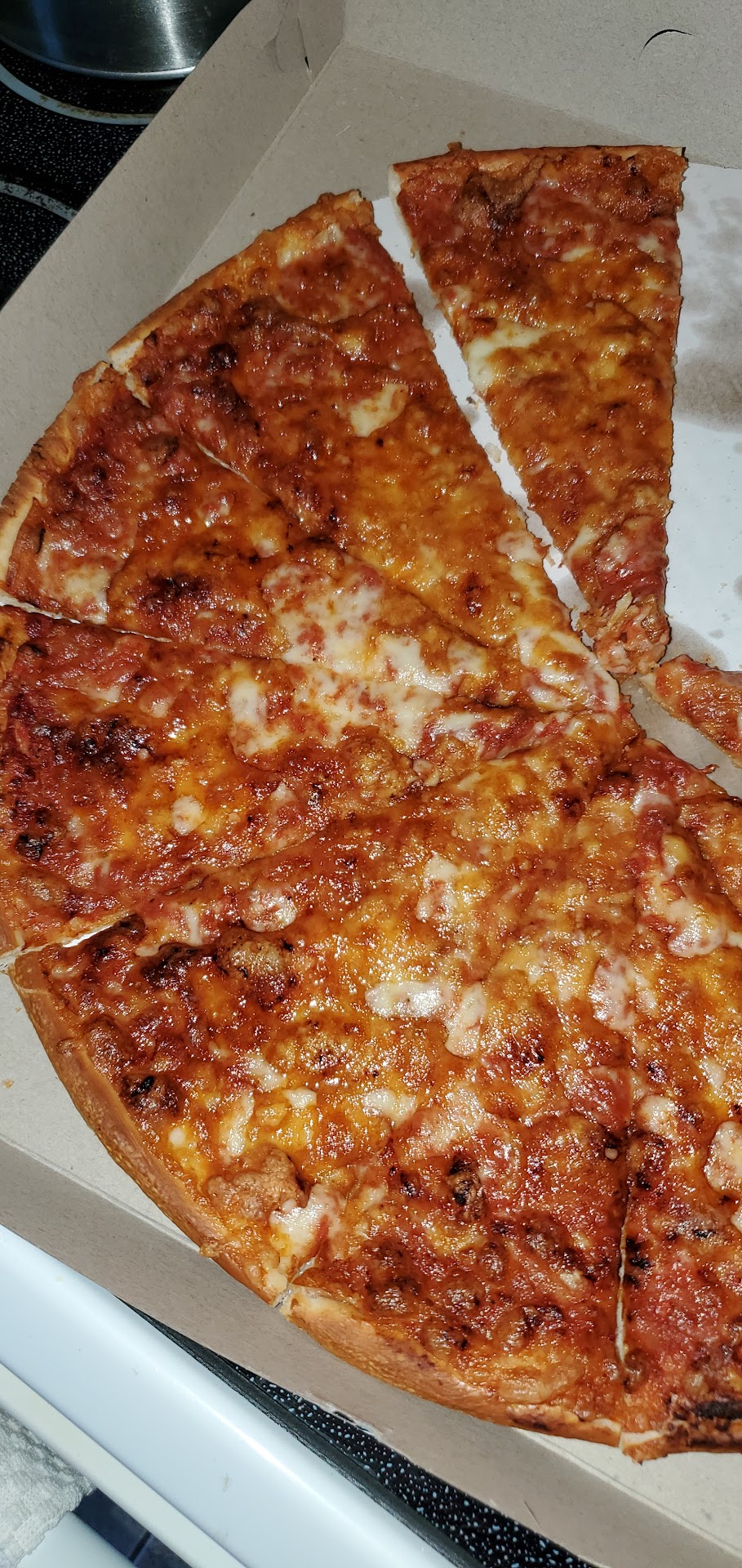 Read moreThis ain’t it! I’m so disappointed because I always wanted to try this pizza, but they were always closed. My tastebuds were in the mood for some pizza, and this did not hit the spot. If you like a really cheesy pizza, close to extra cheese, then this is for you. When you grab a slice and all the cheese gets pulled off, and gets stuck to the other mass of cheese on the pie. Not for me. It seemed like it was a little under cooked compared to the pictures I’ve seen in other reviews. The bottom crust wasn’t crunchy and firm the way I like. It was also weighed down by the cheese which made the slices limp. The sauce had flavor, but I didn’t like the taste. I should’ve bought a small instead of an XL, waste of...