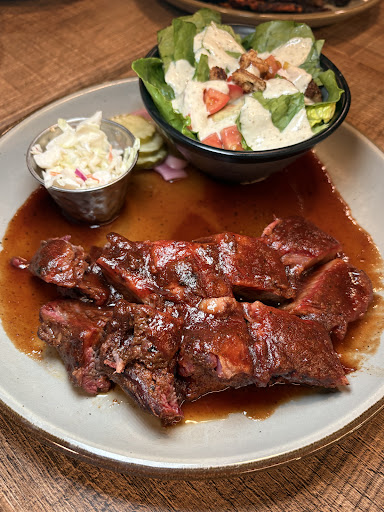 Ā Ā Ā Read moreUpdating in light of my recent experience. The food tastes good, at least what I had did. However, the portions of brisket on the sandwiches were pretty small and the service was just terrible. My family and I were the only ones in the restaurant for a while, and we sat and stared at our waters for it must have been 15 or 20 minutes before anyone said anything to us or offered to take our orders, while the hostess folded t-shirts and somebody who looked like a manager wandered around the restaurant, looked me straight in the eye, and did nothing- didn't greet us or offer to get our server, or even just tell us that she would be with us in a moment. With a large group at lunch, I didn't expect everything to come out exactly at the same time, but it did take quite a while for everyone to get their food, especially the one person who ordered a salad? Which came to the table in a plastic takeout container lid looking thing??? Also, they really do need a kids menu, and the fact that the hot dog is literally just served on a bun on a plate and no sides seemed very very odd to me. I guess there's also some renovation work next door because close to the end of our meal there was very very loud banging on the other side of the wall! Unfortunately, the experience was not worth the price, even though the flavor of the brisket was authentic Kansas City BBQ; I've had much better service in the airport BBQ restaurants at Kansas City.