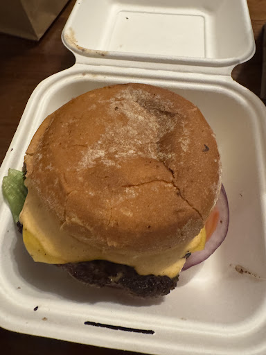 I got a single cheeseburger and it was to have a sauce on it. I couldn’t taste it. I added mayo and ketchup at home. The meat was burnt. The bun was okay. I ended up throwing the sandwich away.