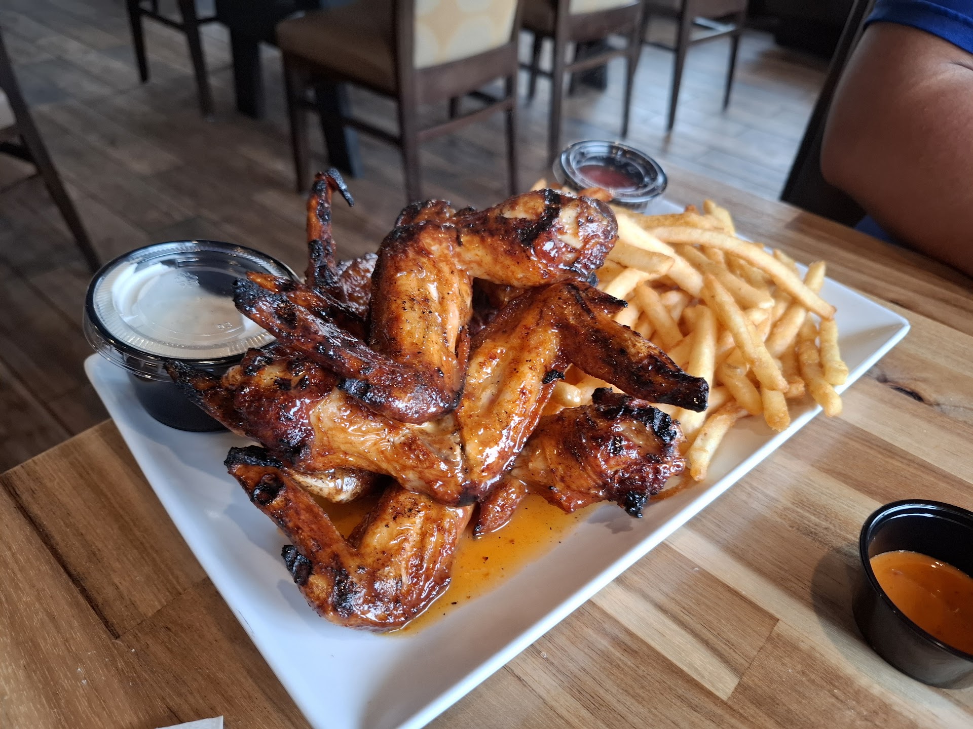 We started with the Mango Habanero 6-piece chicken wings, which offered a delightful balance of sweetness without overwhelming spice. The grilled chicken was the star, capturing the essence of a backyard BBQ with its smoky flavor and tender texture. Pair that with the lively atmosphere—catchy music, vibrant murals, and a party-like vibe—and you’ve got an unforgettable dining experience.