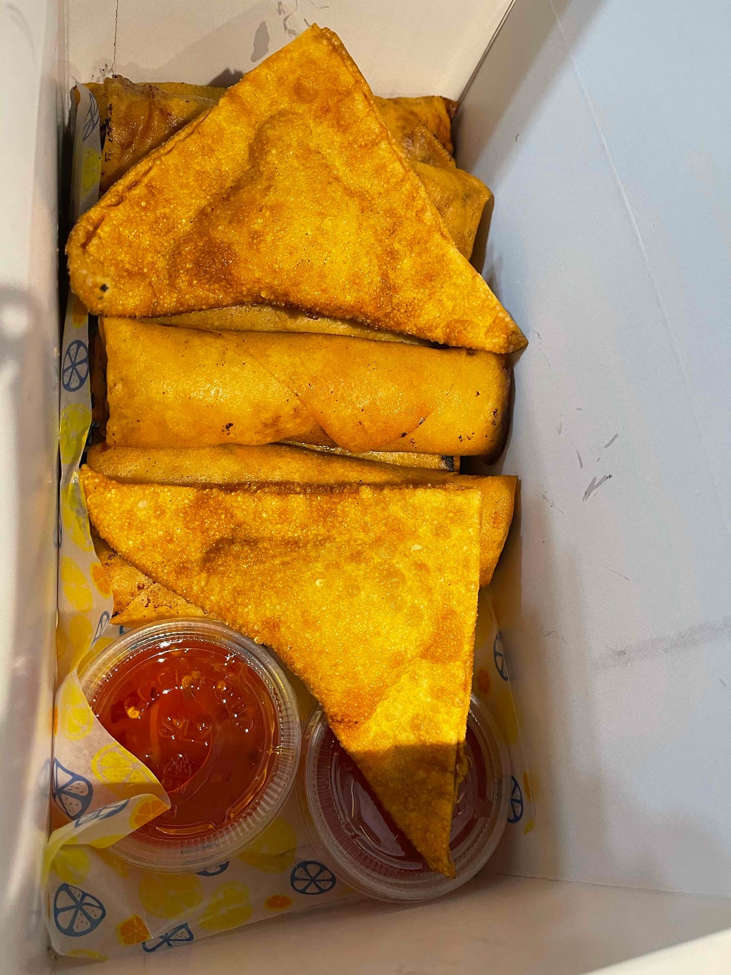 On this trip, we ordered spring rolls, chicken egg rolls, pork egg rolls, shrimp pad Thai, chicken lo mein, shrimp stir fry, chicken teriyaki sticks, and Thai coffee boba! All of our orders were delicious!