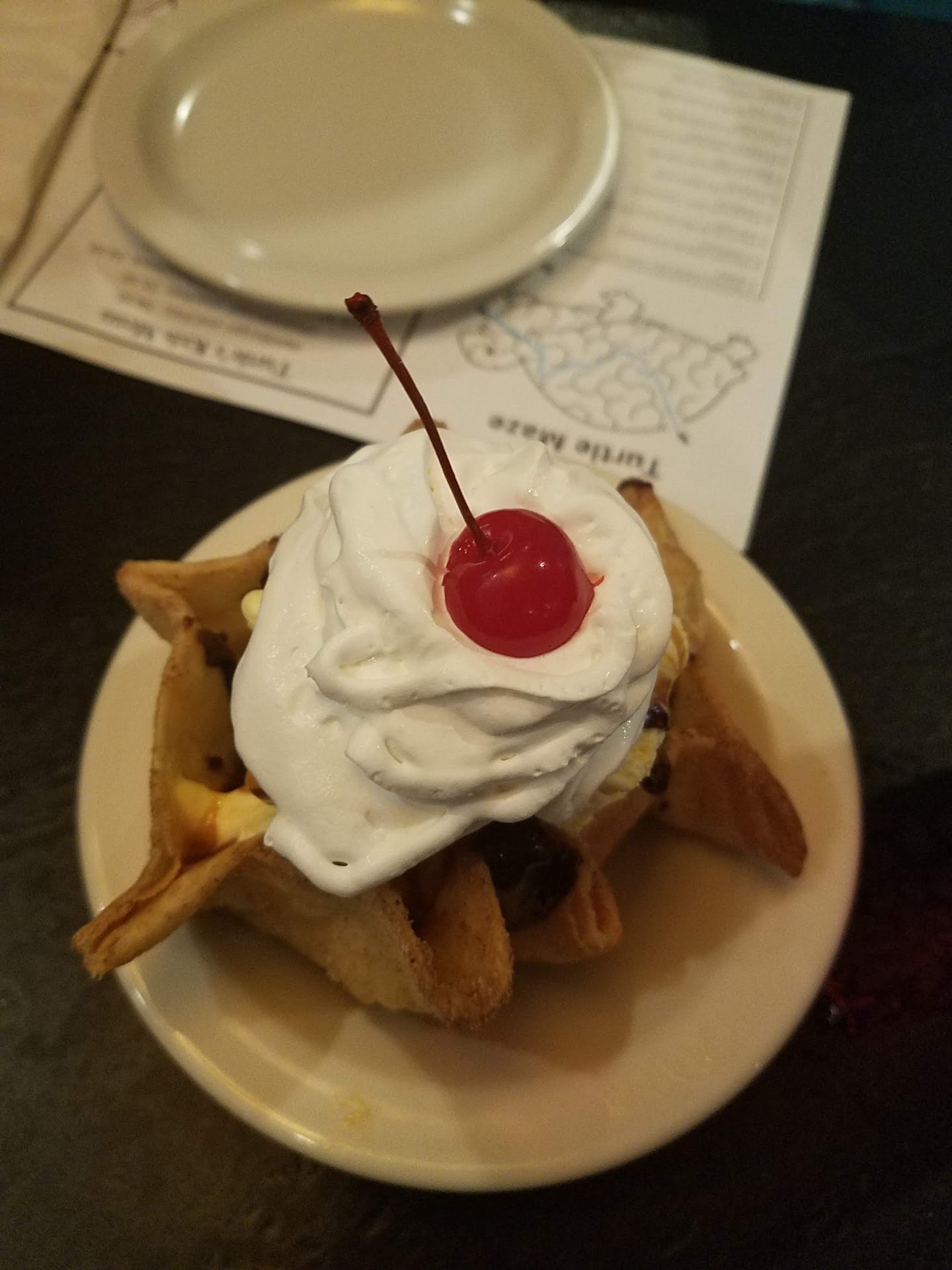 Stopped by here on the way home from Valley Fair. Forgot that the Vikings were on but was still seated right away and the game crowd was of all ages and very well behaved (as well as could be on border battle day) Pretty large place with tons of TVs. Wait staff was friendly and engaging, also trying to keep tabs on the game :) Was pretty hungry so ordered a decent amount. If not so hungry definately shareable entrees. Started with a pitcher of draft root beer, very smooth and creamy, beats big names any day! My daughter ordered the Chicken Alfredo, nice sized pieces of grilled chicken and a very cheesy and creamy sauce. On her scale from 1-10 she says it was a 7. It comes with a side salad and garlic toast. She isn't much for salad so I ate it, pretty good side salad. I ordered the wings and cheese curds. The Thai flavor was ok, next time I think I'll try their Dragon. The cheese curds were white cheddar and had a light breading, not over cooked. My wife had the chicken tender meal. The tenders were juicy and crispy. Cole slaw was good, was chunky with a creamy sauce and not sweet or sour. The potatoes were ok, paired well with the dish, maybe try a different side next time. The turtle sundae is a bit unique, comes in a small taco bowl which has cinnamon and sugar like a churro. A healthy scoop of ice cream covered with chocolate and caramel sauces. Overall a fun time was had with good food and seems a great place to...
