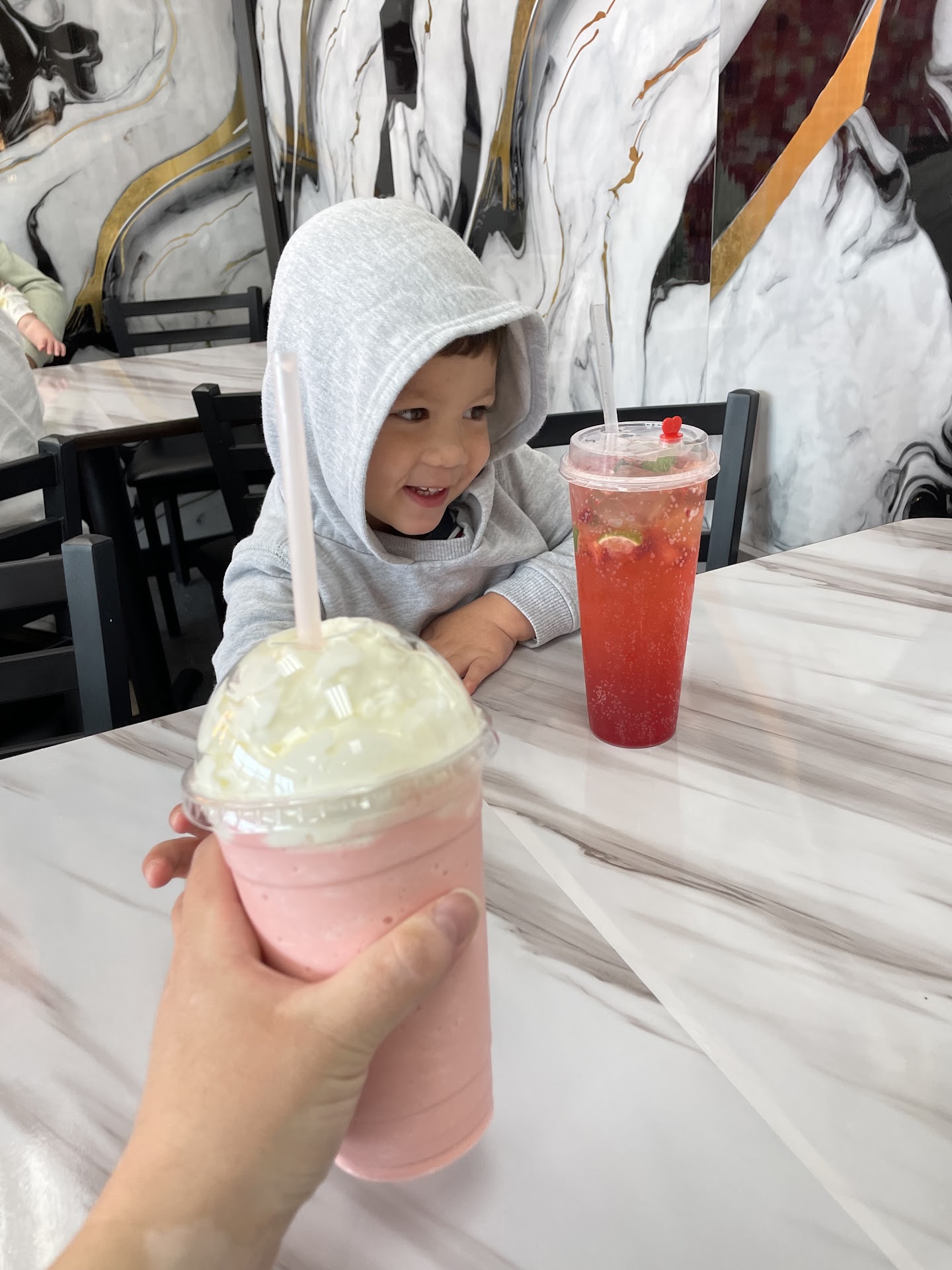 This is an amazing drink shop. I highly recommend going and trying it out. They have such a cute shop and the drinks we got were delicious. We got a virgin strawberry lemon mojito and a strawberry milkshake. It was the first mojito I’ve ever had and it was pretty good. The milkshake was really smooth and you could tell it was rich with milk. It was probably one of the best milkshakes I’ve had in a long time. The staff also goes above and beyond the call of duty for you. My 3 year old spilled the mojito on their table and I felt horrible about the mess. But it didn’t seem to even phase the staff who were quick to offer a new drink for free. I told him he didn’t have to do that but he brought one out for us anyways. It was a very sweet and kind gesture that wasn’t expected. We will definitely be going back there frequently. It’s my new...