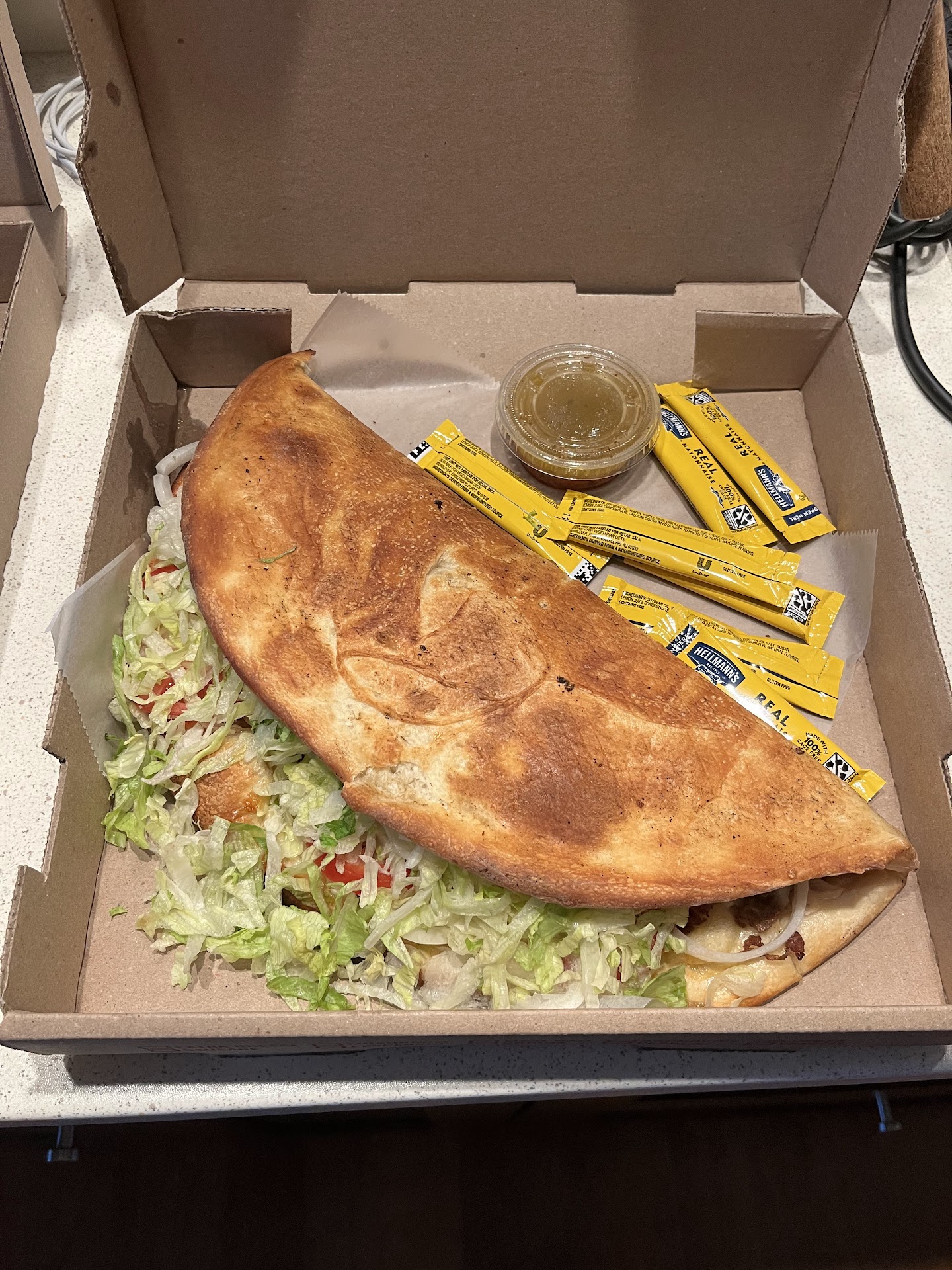 First off, their small calzone is not small at all. In fact, it's an excellent deal for a $12 calzone and is filled perfectly. I tried the plain cheese. There wasn't too much dough, which can often be an issue with some pizza shops. Also, there was a whole lot of cheese. Mozzarella, provolone, and ricotta I believe. The outside was crispy and the inside did not get too soggy. I also liked the tomato sauce it was served with. The food was served warm, even the sauce.