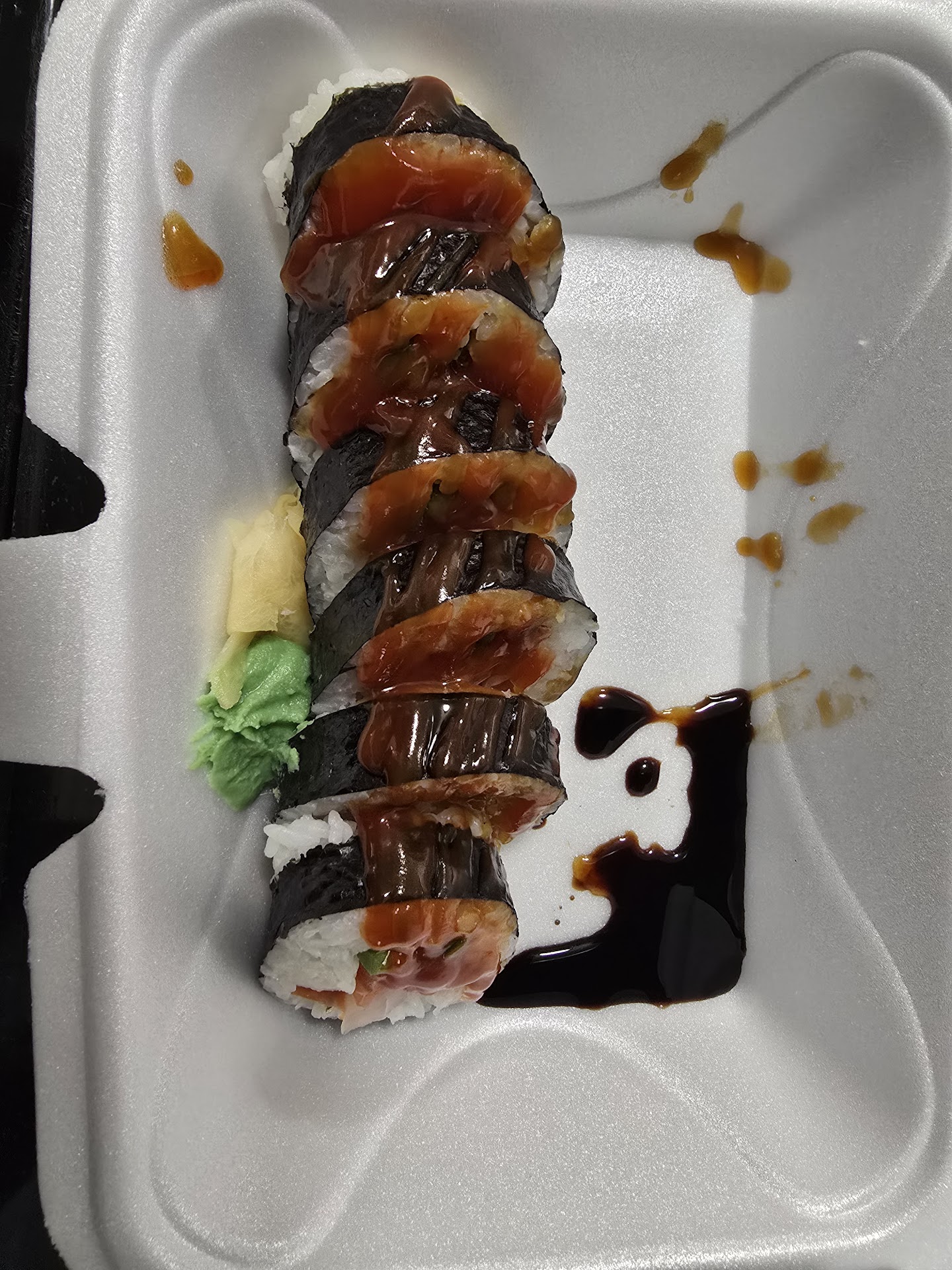 Read moreThis was the most VILE sushi I have ever had. I ordered the Tuna Tataki, Angry Wife Roll, and the miso soup. The tuna looked like it had been sitting out for hours - it was gray and dried out. Certainly not seared. The sushi roll looked (and tasted) like ketchup mixed with soy sauce was slathered all over the top. Certainly not the 'spicy' sauce that was advertised. The fish tasted old and fishy and the roll had GREEN PEPPERS inside of it - instead of the advertised jalapeños. Never in my life have I had green peppers in sushi. The roll itself was poorly wrapped and had the diameter of a tall soda can. I certainly was an 'angry wife' after opening the box. I am stunned that others have had such a good experience. This was total garbage and went right...
