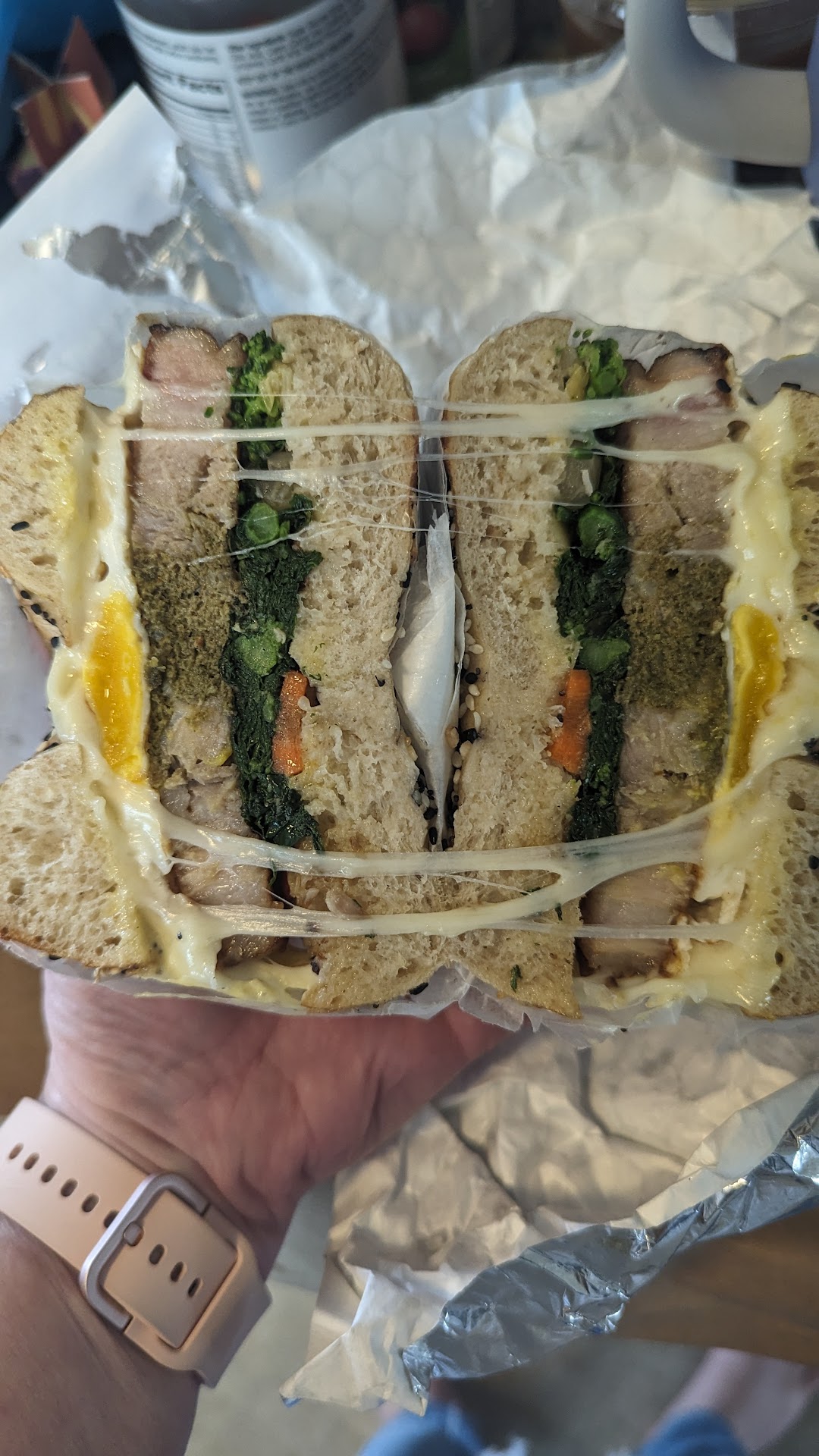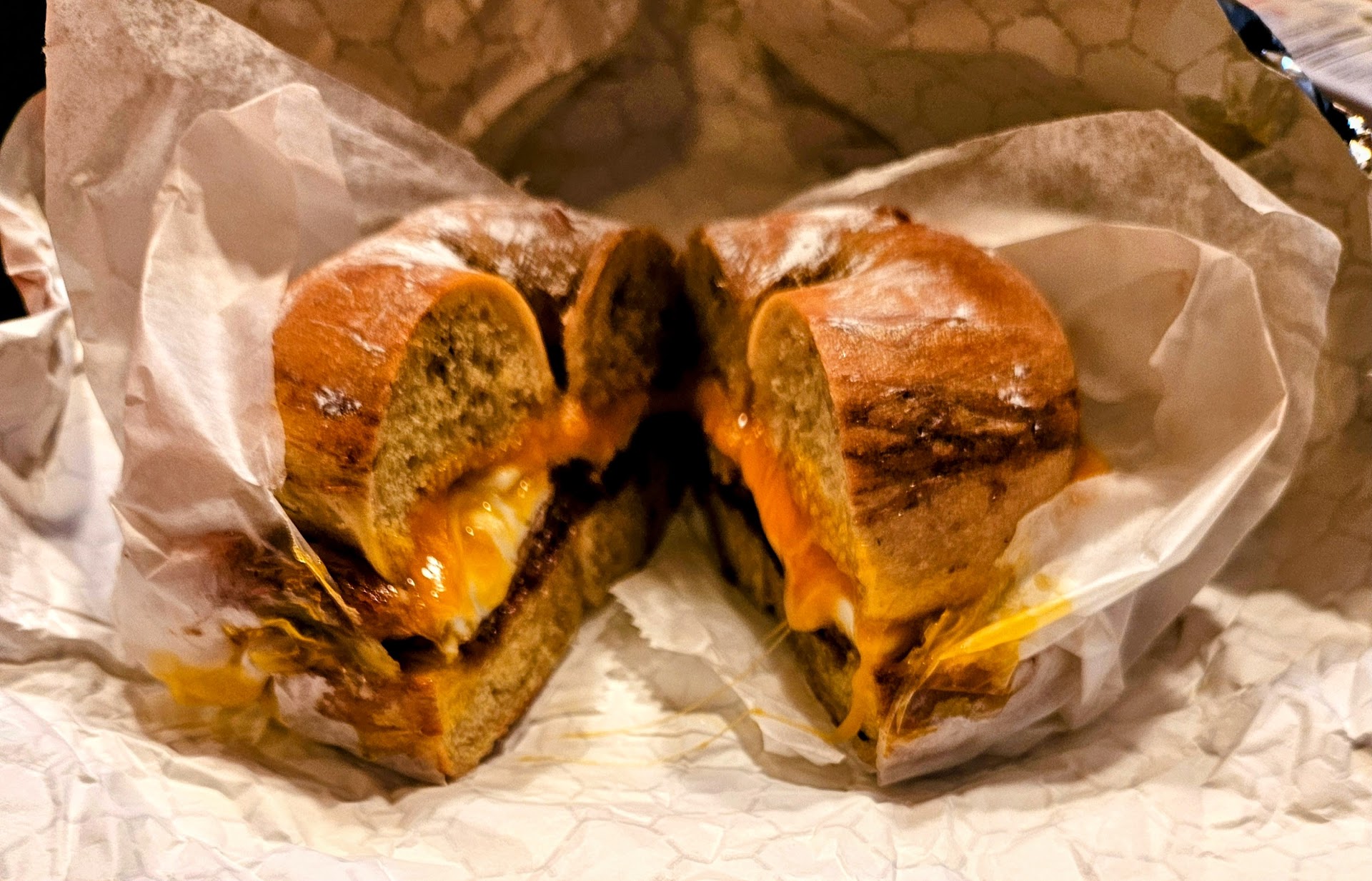 My go-to order is their egg and cheese on a salt bagel - simple but absolutely delicious every time. My spouse swears by their smashburger sandwich, which is surprisingly amazing for a bagel shop!