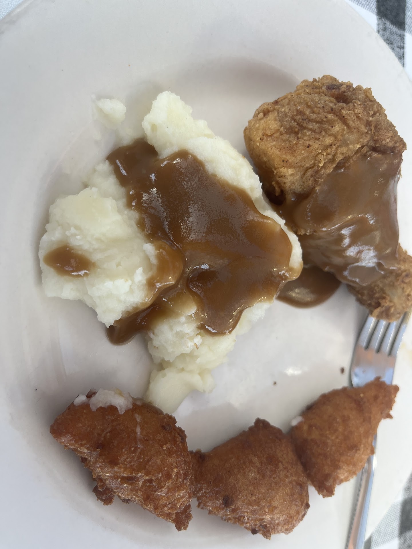 Got the field peas and those had zero seasoning. Got the mashed potatoes and those were clearly instant but weirdly enough the best thing I ate from the hot bar that wasn’t a hush puppy.