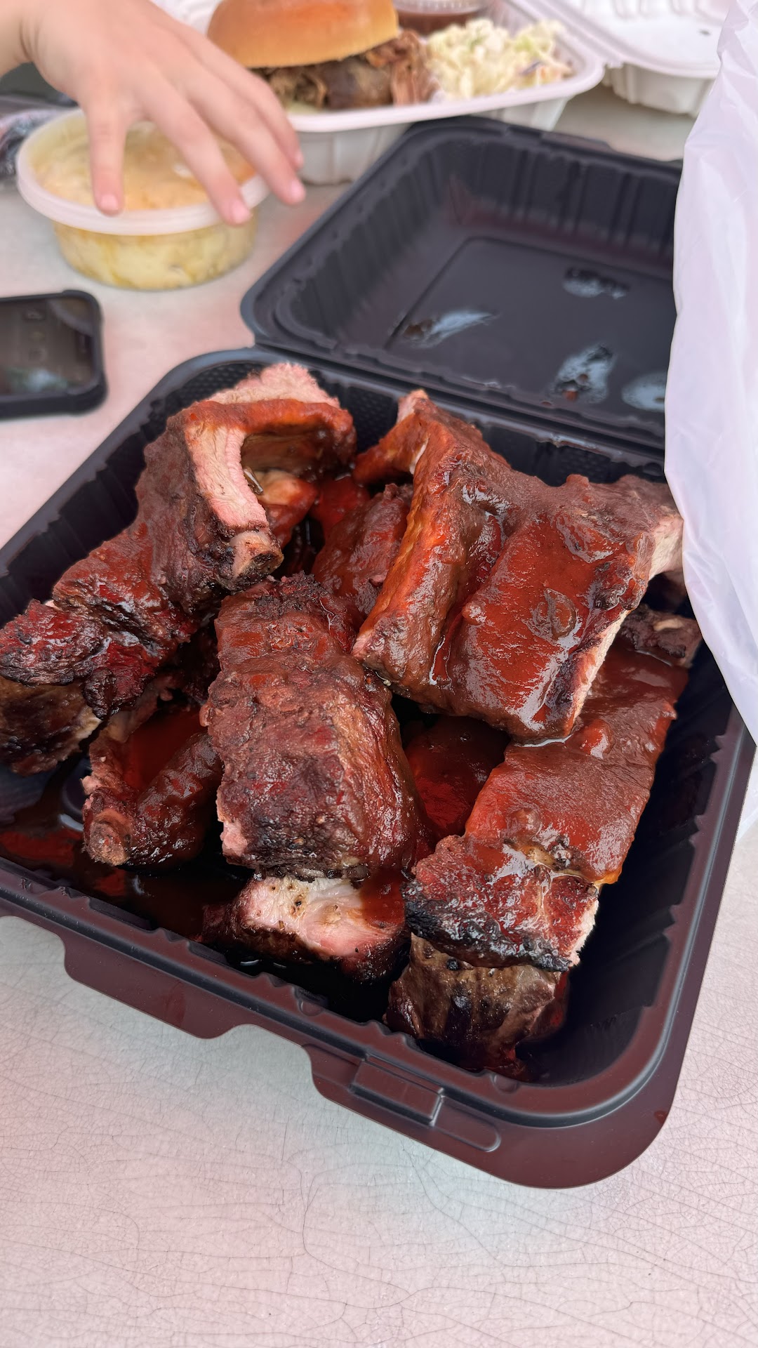 Read moreWent by this on my way home from day one of a soccer tournament. Book marked it in my head and found myself there a day later around lunchtime. It was 1:15 and they were just out of brisket so assuming they open at 12, get there early for that! We had the ribs (pictured), pulled pork, and Mac n cheese. The ribs were amazing. Good bite - not fall off the bone but tender and juicy... I always look for that round bite mark to show it's just holding together enough. I must say that these are worth the drive if you love smoked food. You can get your ribs dry too but I'm a fan of Smokey meat paired with sweet sticky sauce. I didn't sense any spicy heat to them if you're curious. The pulled pork was smoky and tender. The bbq sauce is not too dominant which allows the smoke to be the star of the show. Finally the Mac n cheese is incredible - cheesy, a bit smoky and well seasoned. I have leftovers of both ribs and Mac n cheese which won't last the night. Go there. Enjoy their food and let them know. They were all very friendly and getting to say thanks to the pit master on the way out was fun for a guy like me who loves the art of...