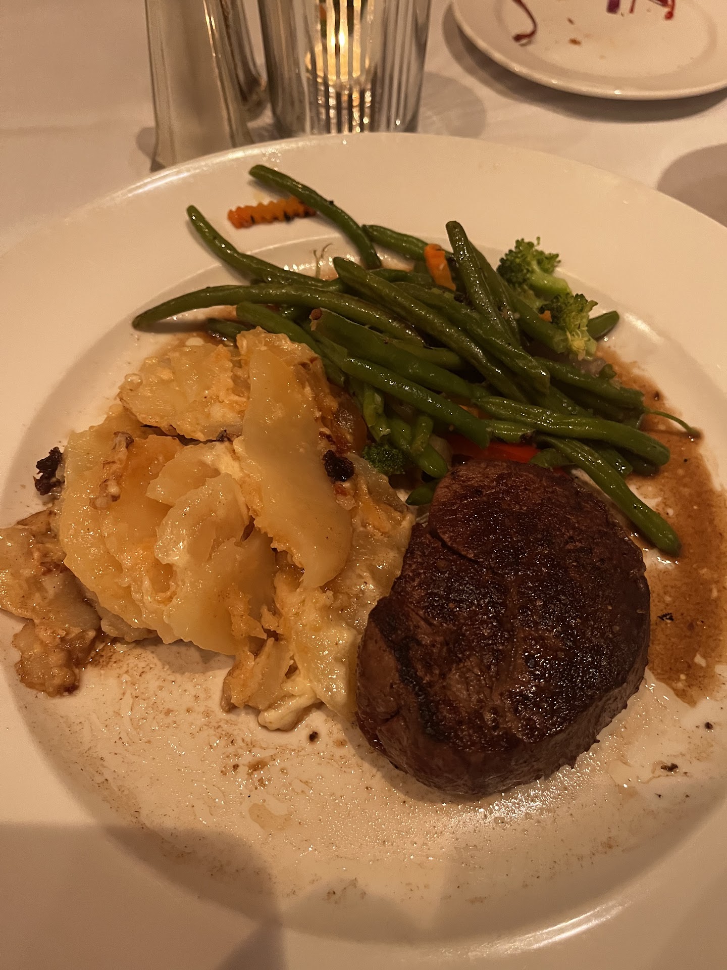 The restaurant has an upscale yet cosy feel to it. Classy and understated decor. Romantic atmosphere. Music was a great selection of mostly 40s and at perfect volume.